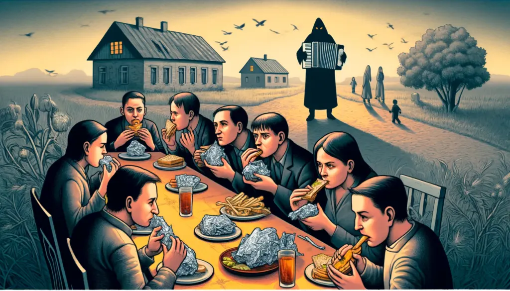 Читатель до конца рассказа «Настя» не знает, что это за радостное событие такое предстоит, но все воодушевлены. И это абсолютно традиция золотого века русской литературы. Описывается радостное событие в жизни девушки Насти и происходит это, по-моему, как раз в 19 веке. А в конце, собственно, радостное событие — Настю готовят в печи и потом съедают. Это был такой шокирующий поворот, который никто из читателей не ожидал. Сорокин мастерски использует натурализм и юмор, чтобы передать ужасающие сцены.