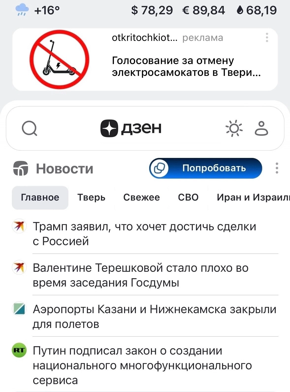 Кому это надо, запрет самокатов. Живу в Твери. Появилось объявление в вк и в поиске яндекс, везде вылазит как реклама. Речь идёт о голосовании о запрете СИМ в Твери. Ладно, достали самокатчики. Но вопрос, кто организатор петиции??? Присмотреться, какая то шарага из Казахстана. Какого хрена она запускает таргет, и лезет в дела Твери, России?