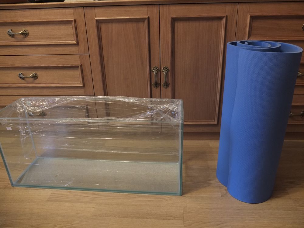 Как изготовить прослойку: в продаже есть туристические коврики, они идеально подходят на роль основания, просто вырежьте необходимый кусок с небольшими припусками и установите Ваш аквариум на коврик.