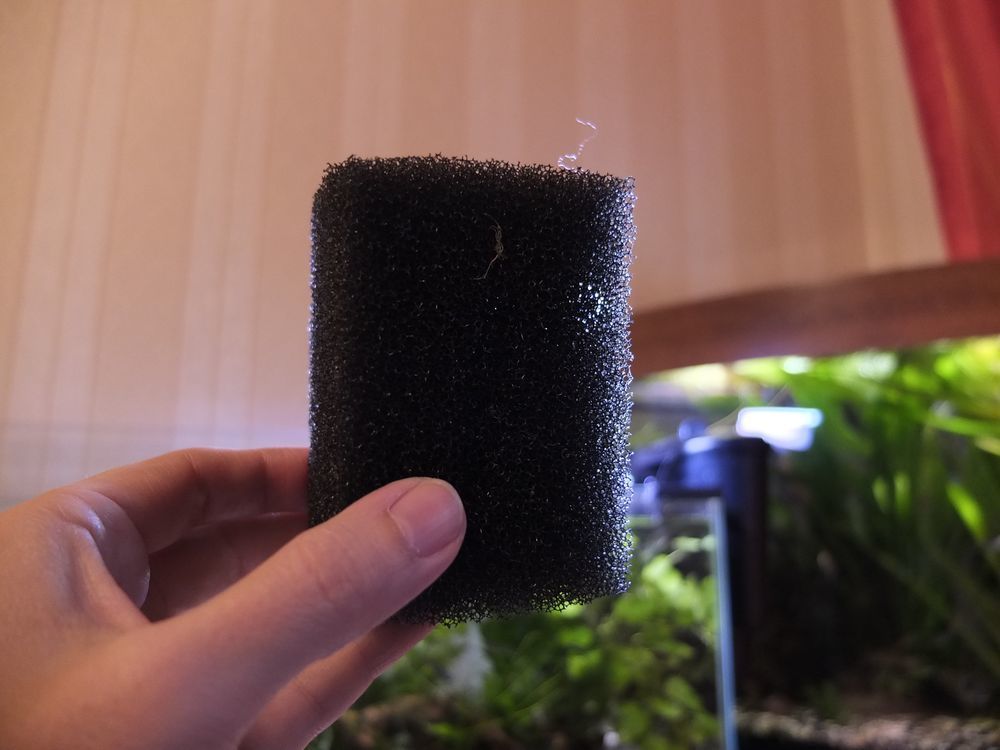 В магазинах продают отдельно губки-монстры ). Они как правило квадратного сечения, со стороной сантиметров 7-9 и отверстием в центре, также они имеют углубления (за счёт этого увеличивается их рабочая поверхность). Вот они то нам и нужны. Так как заборная трубка фильтра проходить близко к стеклу одеть такую губку сходу не получится, одну сторону губки придётся срезать канцелярским ножиком и аккуратно одев (не до упора) на трубку установить фильтр в рабочее положение.
