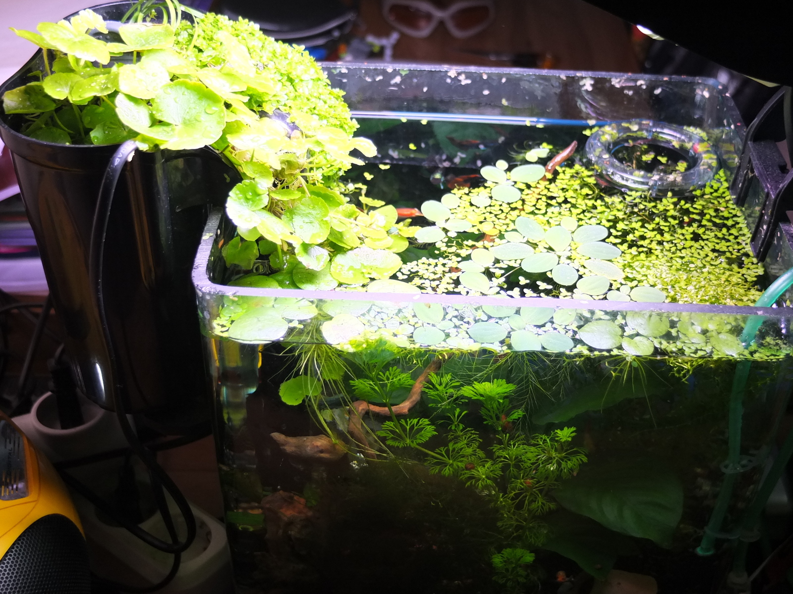 Вчера вечером я установил в аквариум внутренний фильтр JBL i80, но очевидно, что в аквариум моего размера лучше подойдёт внешний фильтр типа "рюкзачок". Так как мой внутренний фильтр занимает и без того уменьшившиеся после укладки грунта скудное пространство.