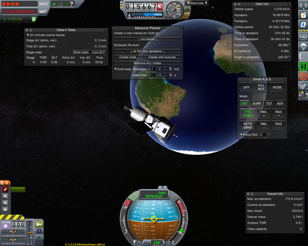 Всем привет. Недавно, а именно вчера, такой замечательный человек, как Андрей Васильев выпустил сборку модов для Kerbal Space Program версии 1.2. Если вкратце, то данная сборка направлена на реализм: реалистичное топливо, двигатели, и, конечно же, настоящая Солнечная система со всеми планетами вместо выдуманной Кербольской. Т.к. я давно являюсь поклонником как KSP в целом, так и RSS (real solar system) в частности, я решил тряхнуть стариной и попробовать запустить простой спутник связи на орбиту Земли.