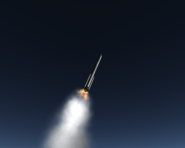 Старт. Примечание: порядок запуска такой: сначала включается РД-191. Жидкотопливным движкам нужно некоторое время, чтобы набрать свою нормальную тягу. Затем происходит отрыв с включением ТТУ.