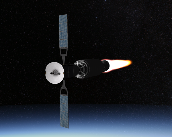 Вторая ступень отработала свое, орбита достигнута, начинаем ее поднимать движком спутника.