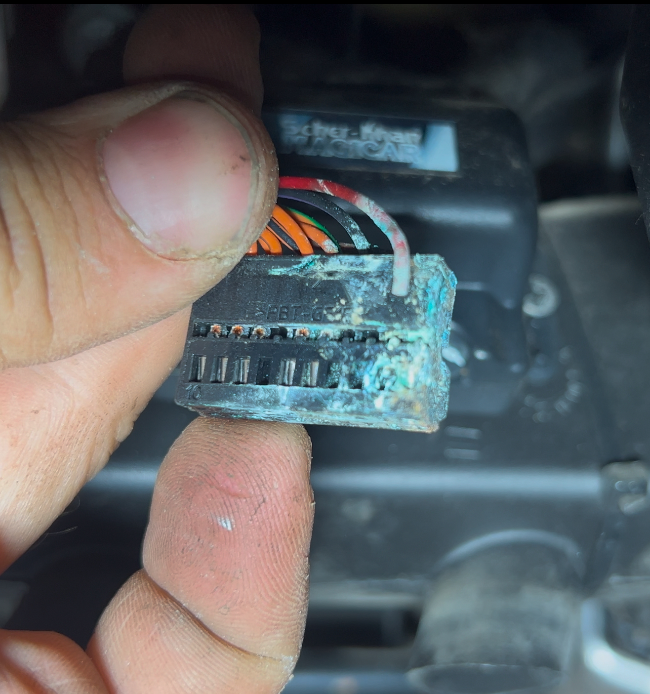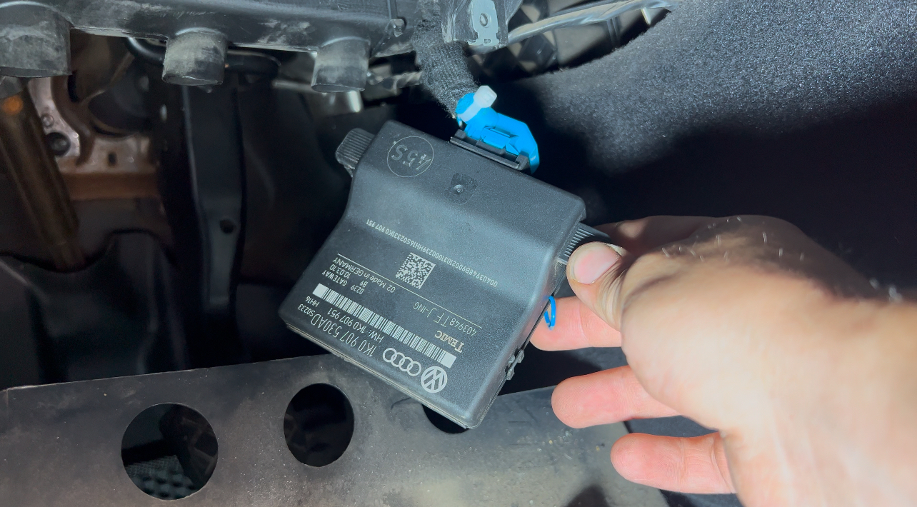 Предохранитель целый. Лезем к Gateway. Он находится над педалью газа. Отстегиваю фишку и вижу интересную штуку.