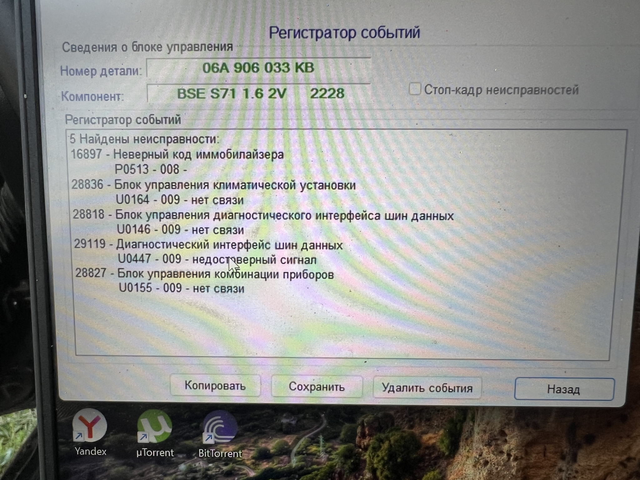 Диагностика по двигателю говорит следующее.