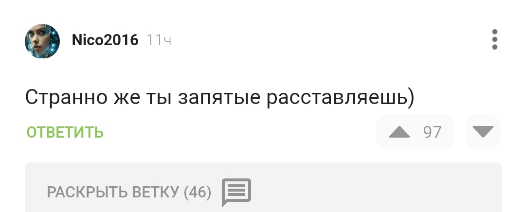 2 chinoz Специфический юмор Запятые 7 месяцев назад Ответ Schuhov в «Коротко о том, как легко стать насильником»#comment_353884154#comment_353895425@Nico2016, @CockuKoma, Вы в телевизоре! Скриншот Комментарии на Пикабу Юмор Запятая Ещё 0