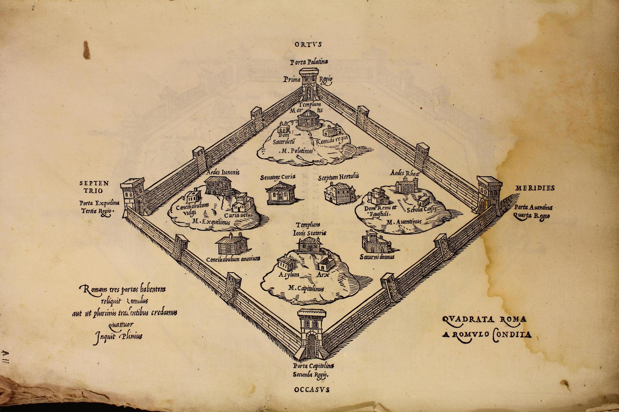 В 1527 году в Риме было издано сочинение Андреа Фульвио - Antiquitates Urbis Romae (Древности города Рима) - краткий иллюстрированный путеводитель. Издание сопровождалось ксилографическими иллюстрациями с картами древнего Рима различных периодов его становления. На картах были представлены схематические и объемные изображения архитектурных памятников, внешний облик которых был восстановлен на основе личных наблюдений, исторических описаний, монет и других археологических фактов.