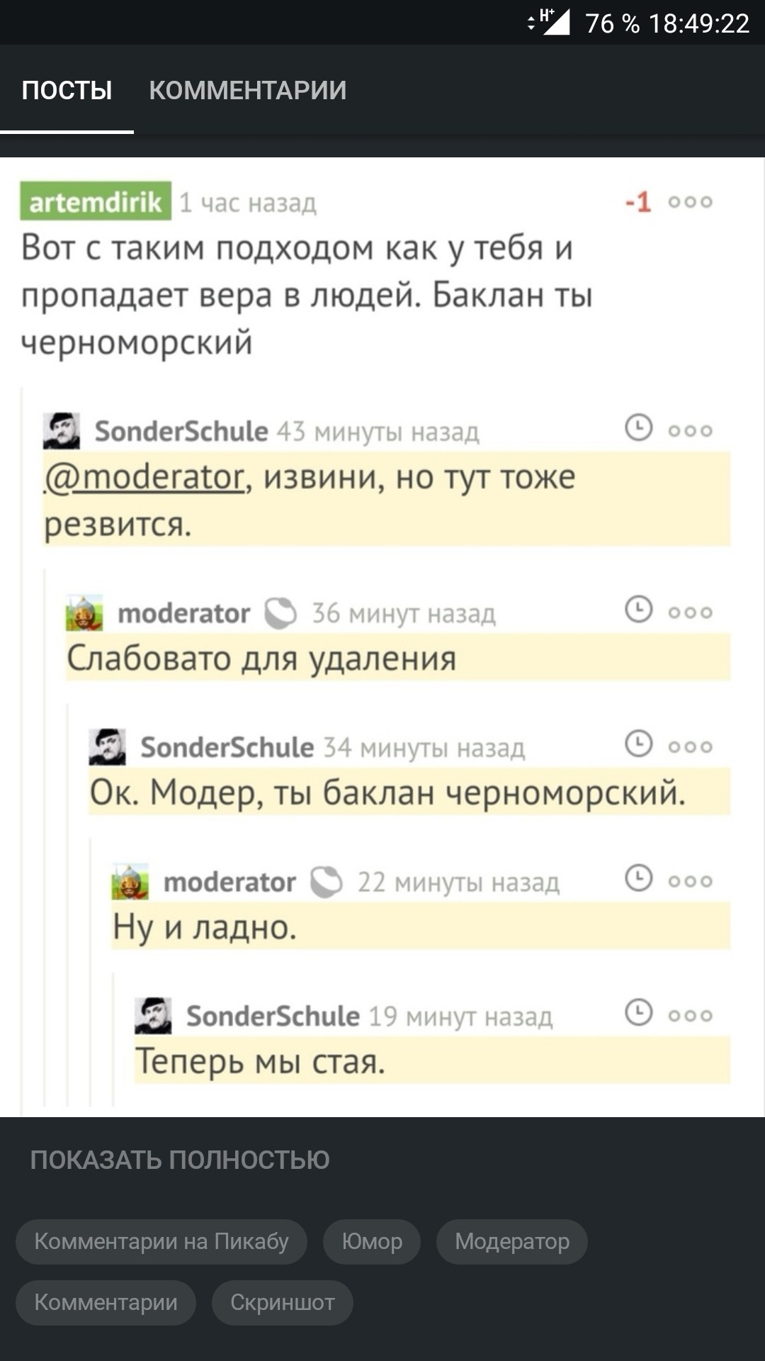 Комментарий удален. Причина: оскорбления, грубое общение и провокации
