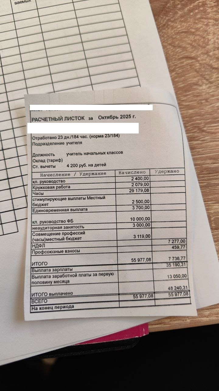 Вот ее расчетный листок