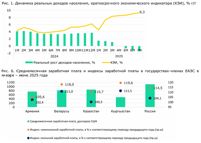 В 1 полугодии 2025 года денежные доходы казахстанцев сократились в реальном выражении. Двузначная инфляция, которая наблюдается в экономике Казахстана с марта текущего года, повлияла на динамику реальных доходов.