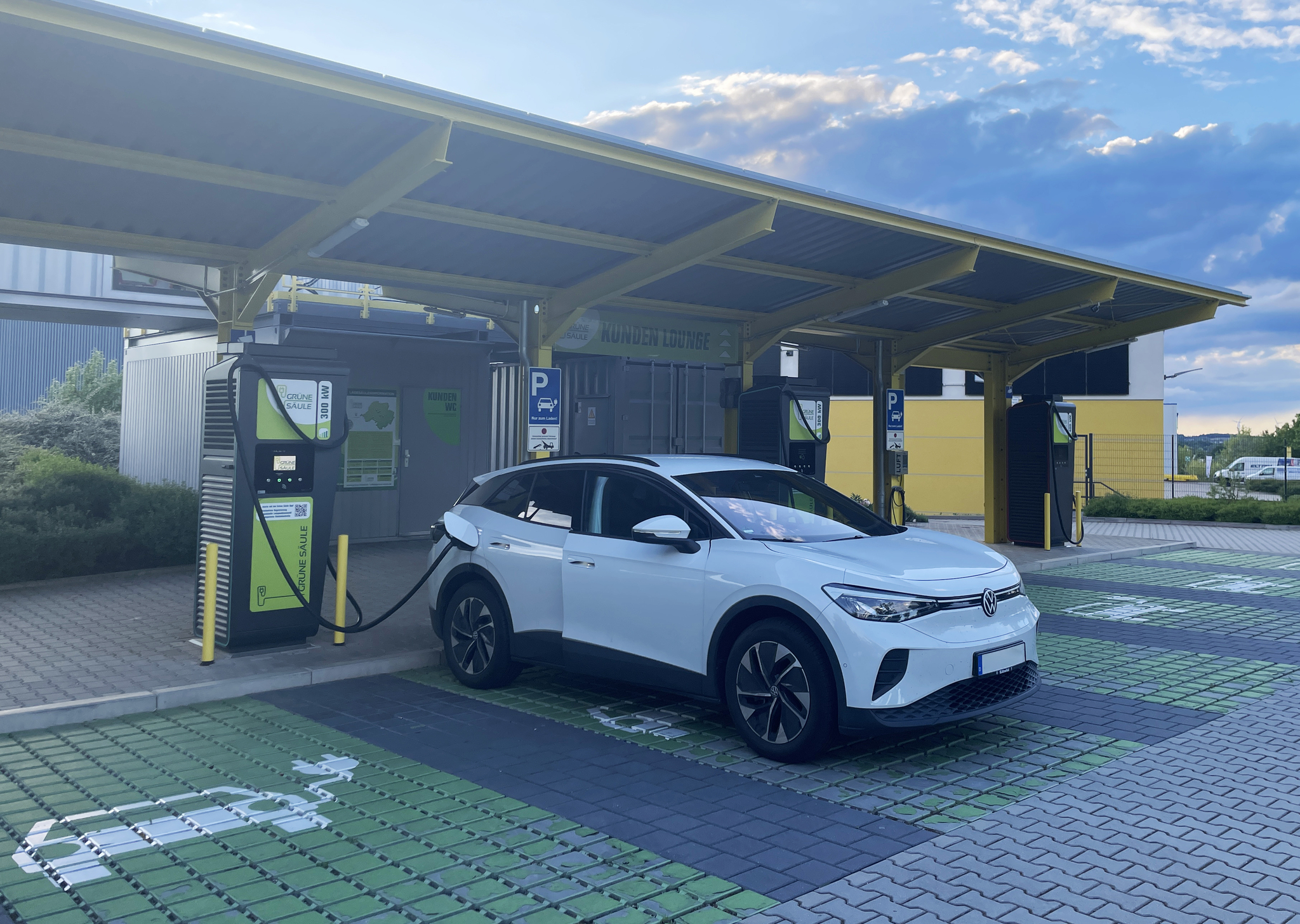 До наших друзей в Саксонии — около 480 км, и обычно мы делаем одну паузу для зарядки. На мощной станции с 15% до 95% заряжаемся примерно за 40 минут. Как раз время, чтобы размяться, перекусить и сходить в туалет.