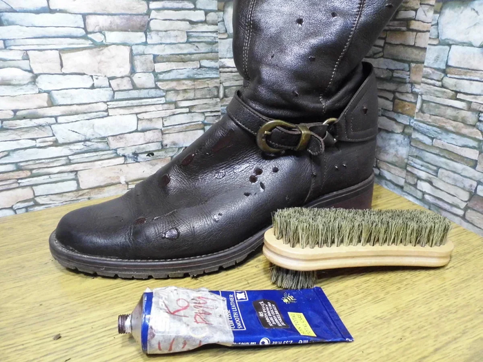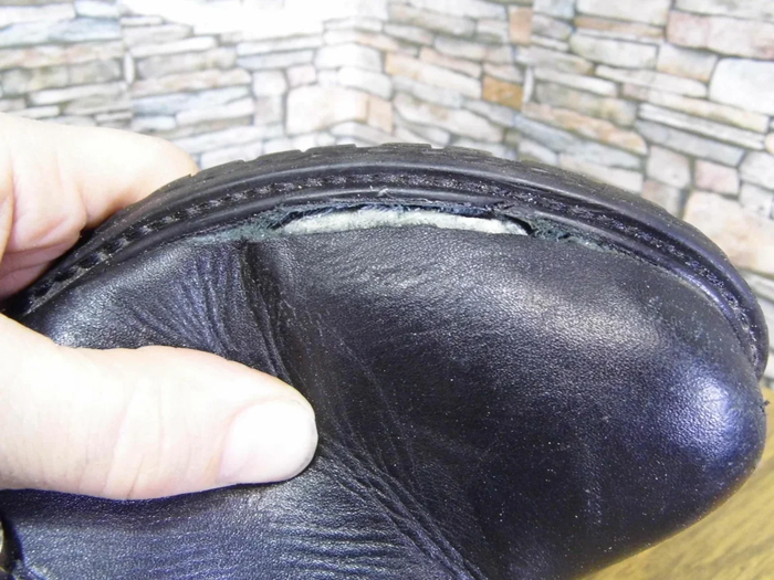 Далее следует осмотреть обувь на дефекты. Чаще всего это прорывы около подошвы - их надо отремонтировать, иначе наши дальнейшие действия теряют смысл.