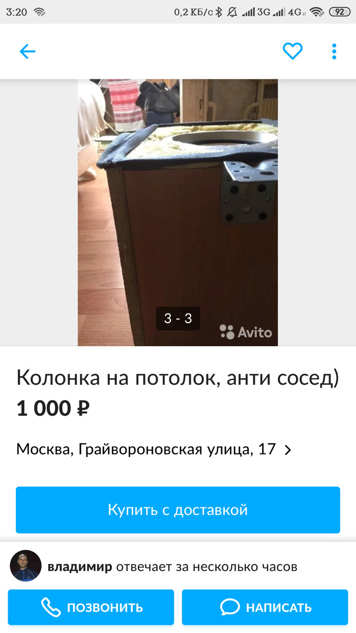 7883 Paveldva1 Защита от шумных соседей или "клин клином выбивают" 6 лет назад Авито Объявление на Авито Соседи Умная колонка Длиннопост