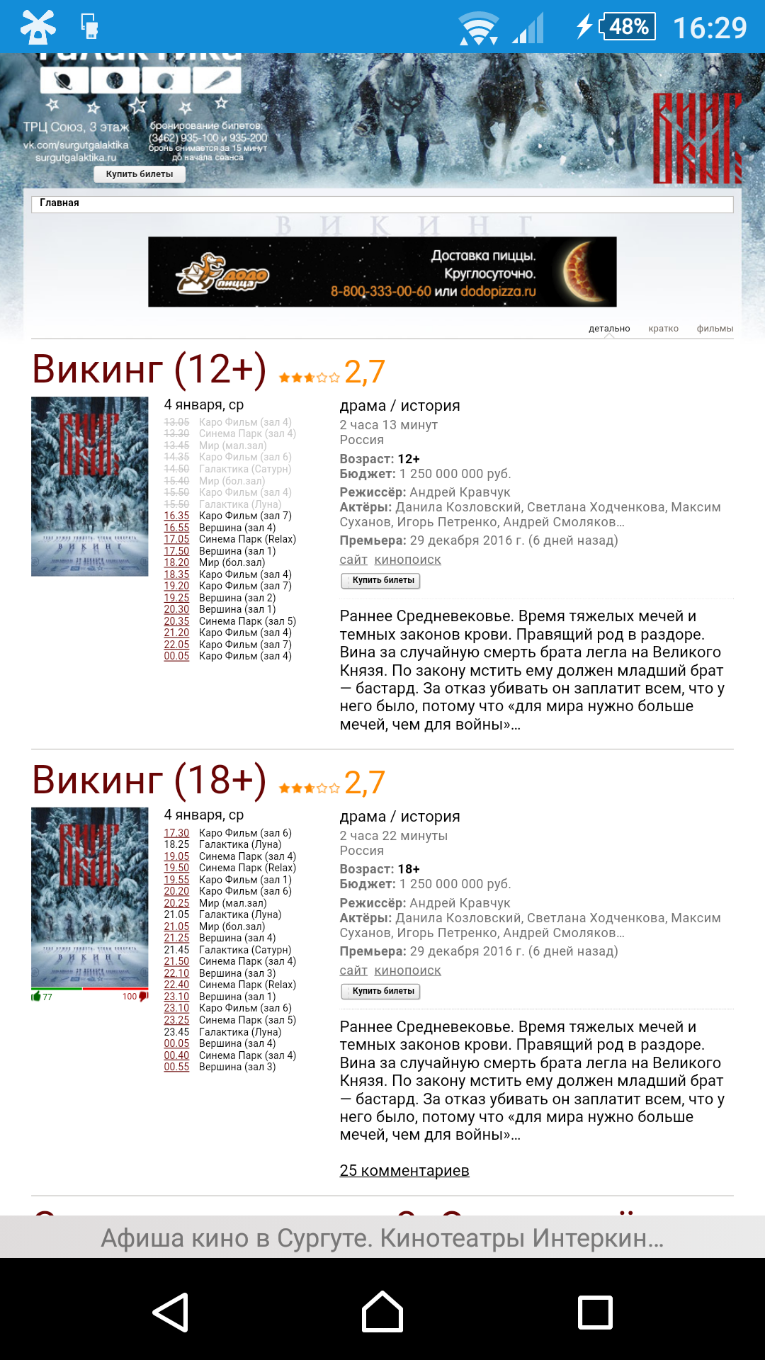 Malyta Зашла на сайт узнать, что идёт в кинотеатрах. 9 лет назад Вопрос: снималось два Викинга? [моё] Сургут Кинотеатр Викинги Тег