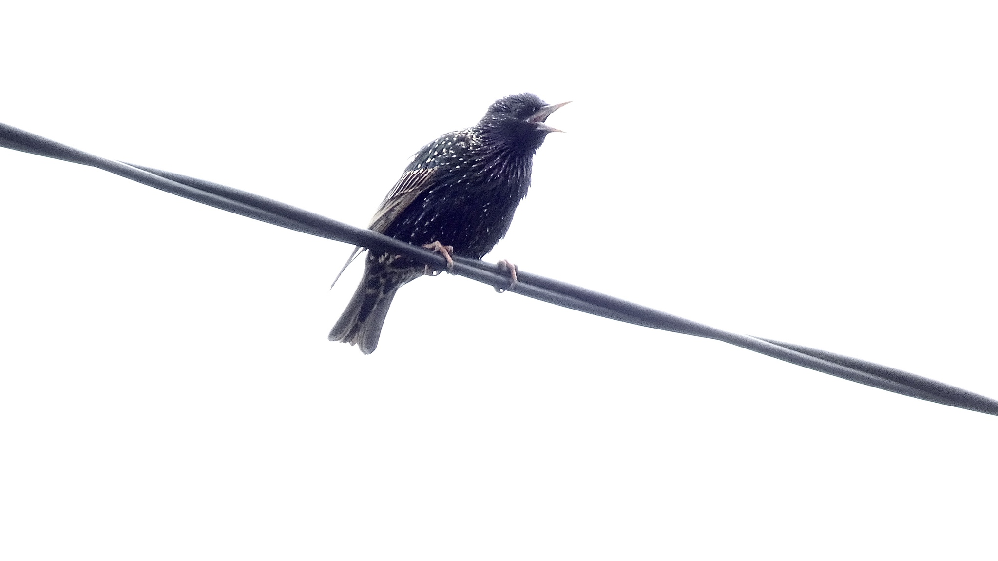 Вышла сфоткать это нашествие, но налетчики стремительно покинули место преступления. Остался только этот, уселся на провода и стал орать. А потом ещё и насрал до кучи.