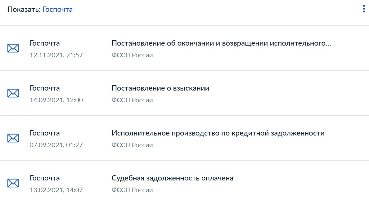 Оказалось еще 06 мая 2020 года был судебный приказ о взыскании долга в пользу Русского Стандарта, в работе у приставов он был дважды: ноябре 2020 по февраль 2021 и сентябрь 2021 по декабрь 2021. Пару слов о долге: это была кредитка, которую этот банк давал всем подряд 17 лет назад, карта с их грабительским процентом вскоре была закрыта, получена справка о закрытии, номер телефона был тоже сменен по причине гор спама о кредитных продуктах этого и других всевозможных говнобанков аналогичных РС. И за 17 лет неизвестно откуда набежало 20тр, хотя была выдана справка о закрытии.
