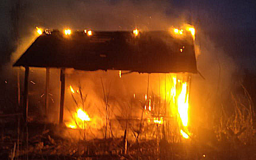 Взбодрившись и натягивая носки на ходу, я выбежал на улицу и увидел, что из соседской бани валит дым. Подбежав поближе, я увидел, что баня горит изнутри — парная объята огнём. В это время подтянулись наши ДПОшники, через прогоревшую стену мы залили два огнетушителя по пять и один на десять литров, одновременно я подключал садовый шланг и звонил начальнику МЧС района.