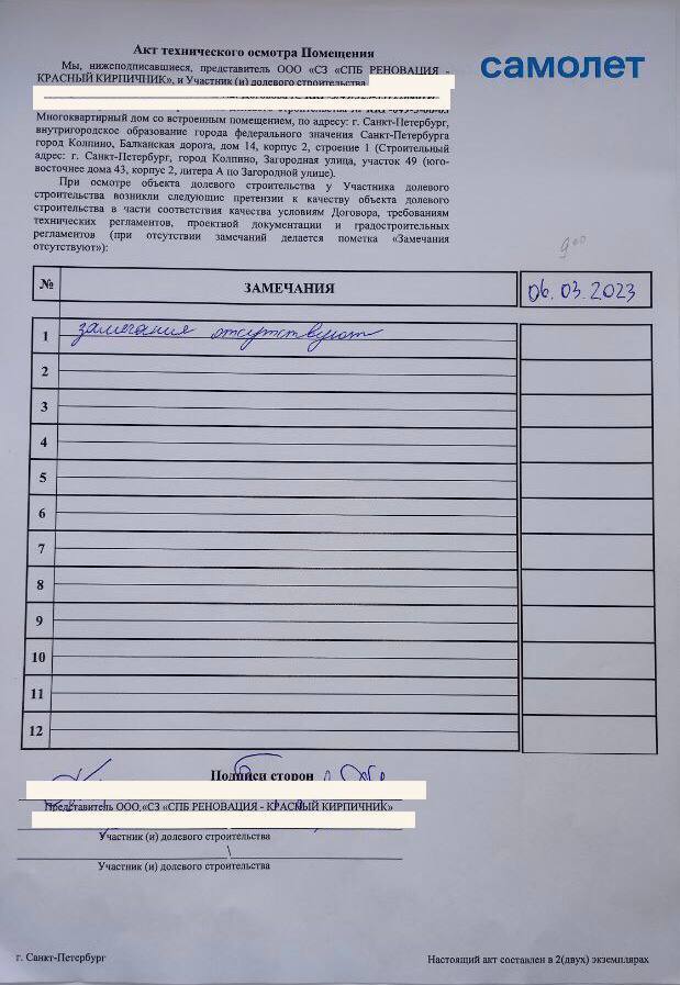 Все кто приходили на тех.осмотр были заверены (лично бригадиром с положенной рукой на сердце), что если акт технической приемки подписать без замечаний на лицевой стороне, а недочёты указать с обратной - ключи будут уже к 1 марту! И многие из дольщиков (в том числе и я) положились на «доброе» слово. Но оно оказалось столь же ненадёжно, как и вся работа отдела заселения в целом.