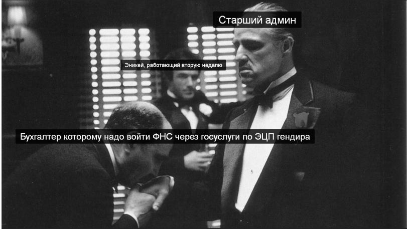120 Skyscrew Лига Сисадминов Затаённый 5 месяцев назад Картинка с текстом Мемы IT юмор Эникейщик Админ Бухгалтер Крестный отец 8 2 Ещё 0