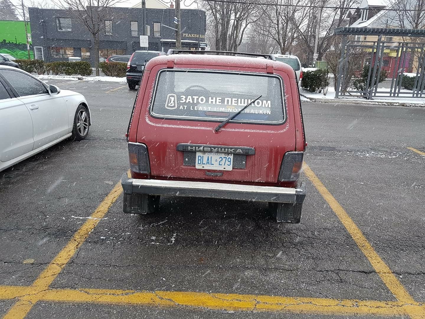 439 redhotchilipeppa Зато не пешком! Или Нива в Торонто 7 лет назад Попалась в январе в Торонто) раньше не было наклейки на стеклеPS. Баянометр показал отличные сиськи 😍 [моё] Торонто Нива Лада Канада Длиннопост