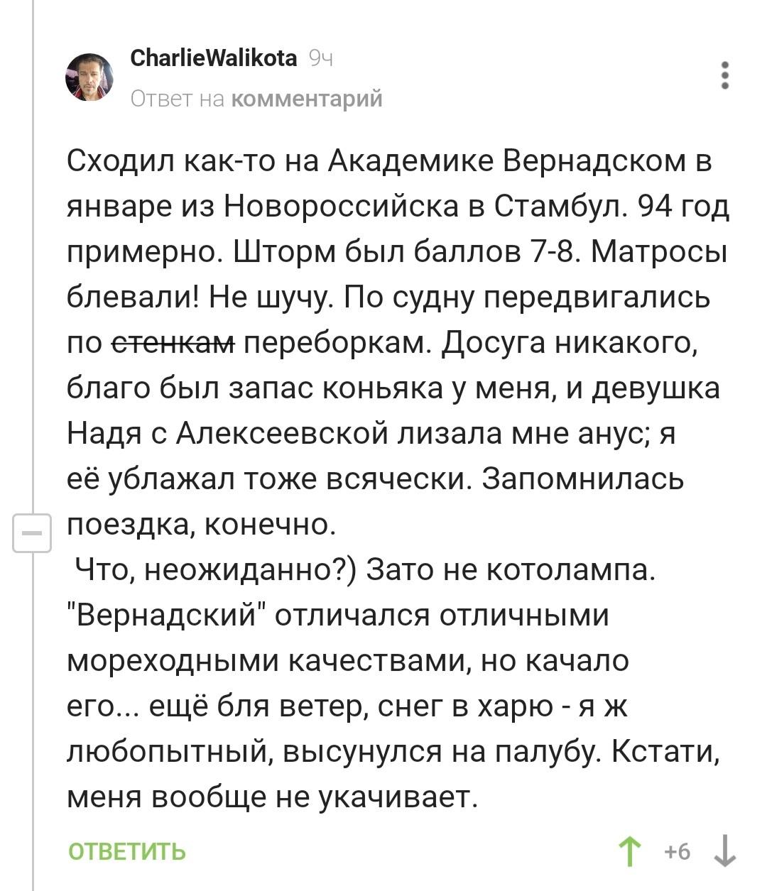 8 tristana77 Зато не укачивает 3 года назад #comment_225536437 Комментарии на Пикабу Скриншот Мат Качка 1 Ещё 0