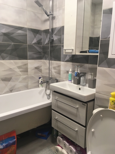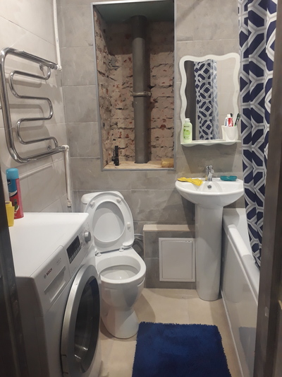 Фоток к сожалению не дают много выложить, Далее поставил унитаз, машинку и раковину.