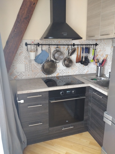 Так же в ту нишу где трубы, запилил себе съемный ящик(а то мало ли чего) из разбитой мебели из комнаты. В общем конечный результат вот
