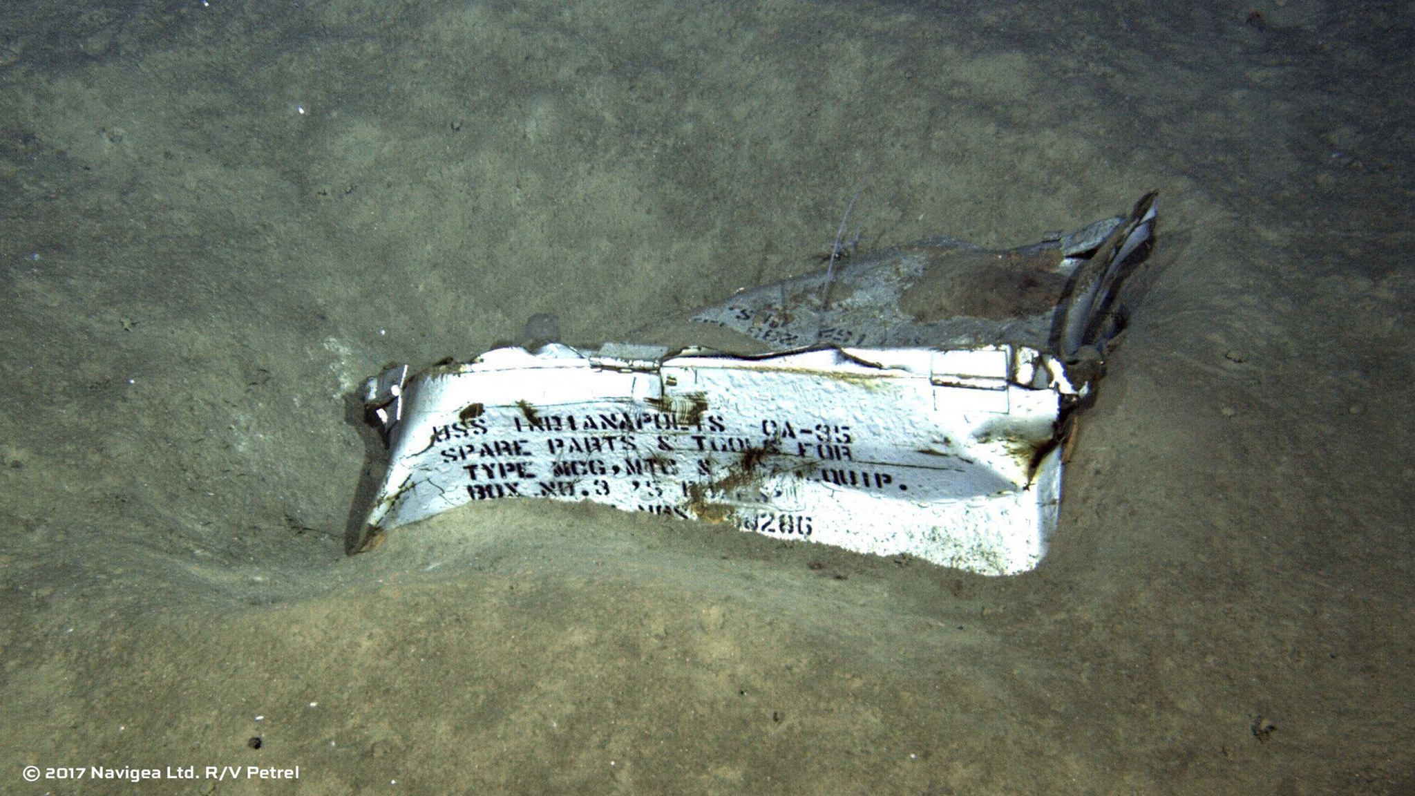 Съёмки затонувшего 30.07.1945 года в Филиппинском море американского тяжёлого крейсера USS Indianapolis (CA-35). Останки корабля были обнаружены 18 августа 2017 года экспедицией, базировавшейся на борту научно-исследовательского судна RV Petrel. Экспедиция финансировалась фондом Пола Аллена — сооснователя компании Microsoft.
