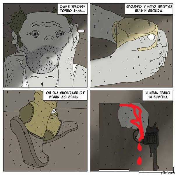 Вот если бы закончилось так - то было бы печально... А так покажи это создателем "LOST" или "Побега" они тебе столько позитивных концовок навыдумывают))))) P.S. Я же не долго мучая добью)) А вообще ходил он по комнате и изабрёл револьвер... Запатентовал, прославился и жил долго и счастлива)))Всем добра...)
