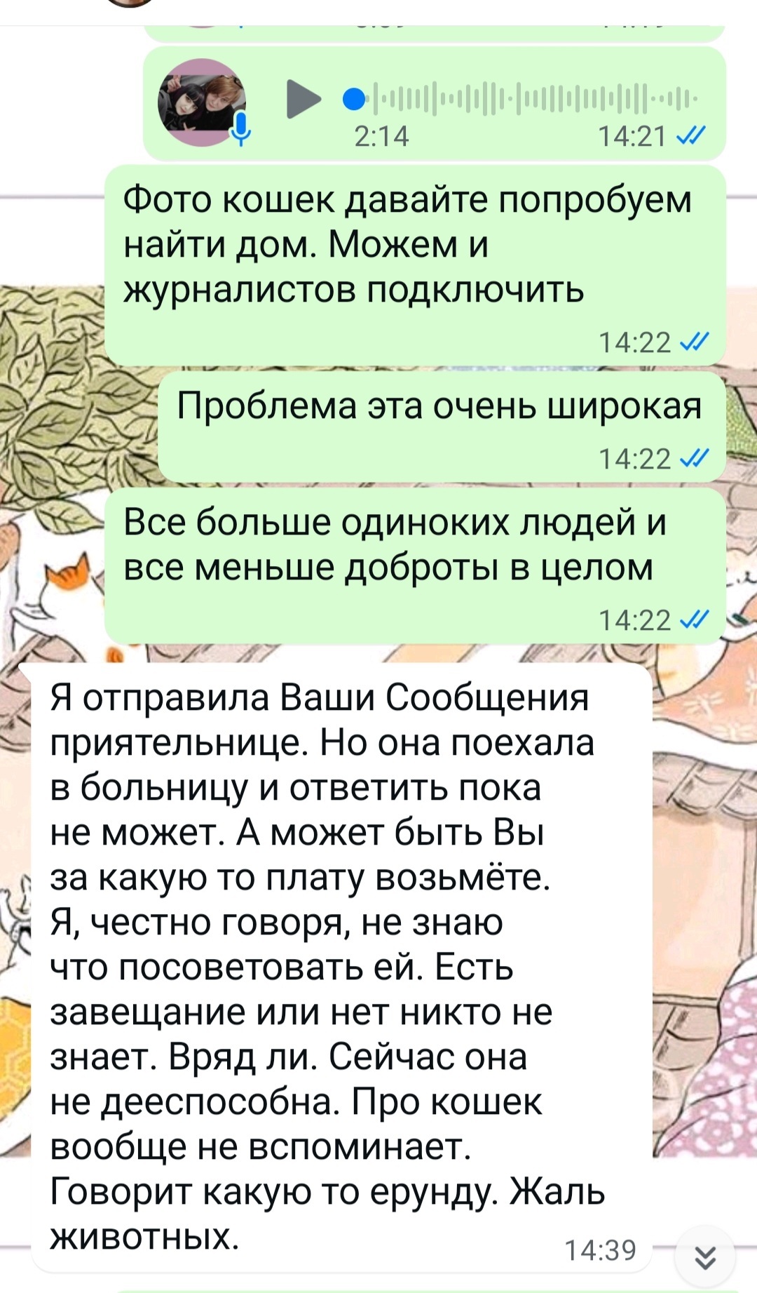 Сегодня меня просто разбомбило . Я и так на последней тонкой ниточке терпения. А сегодня после обращения очередных "наследников"...квартиру нужно освободить от бабушкиных кошек. Она умерла, ремонт нужно делать, выбросить жалко...вы же приют заберите....
