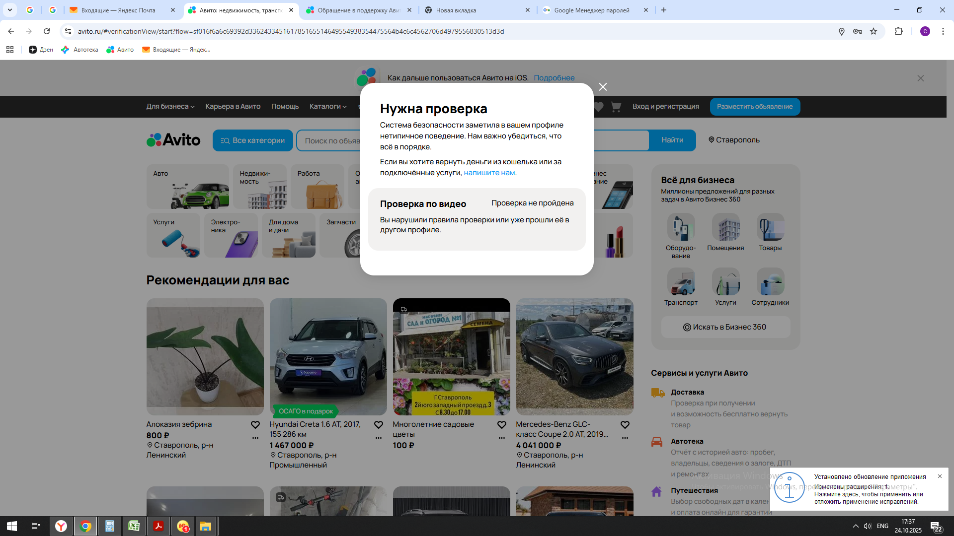 Сегодня при добавлении очередных объявлений ,столкнулся с ошибкой , профиль выбросило за пределы , а при входе просит пройти проверку .