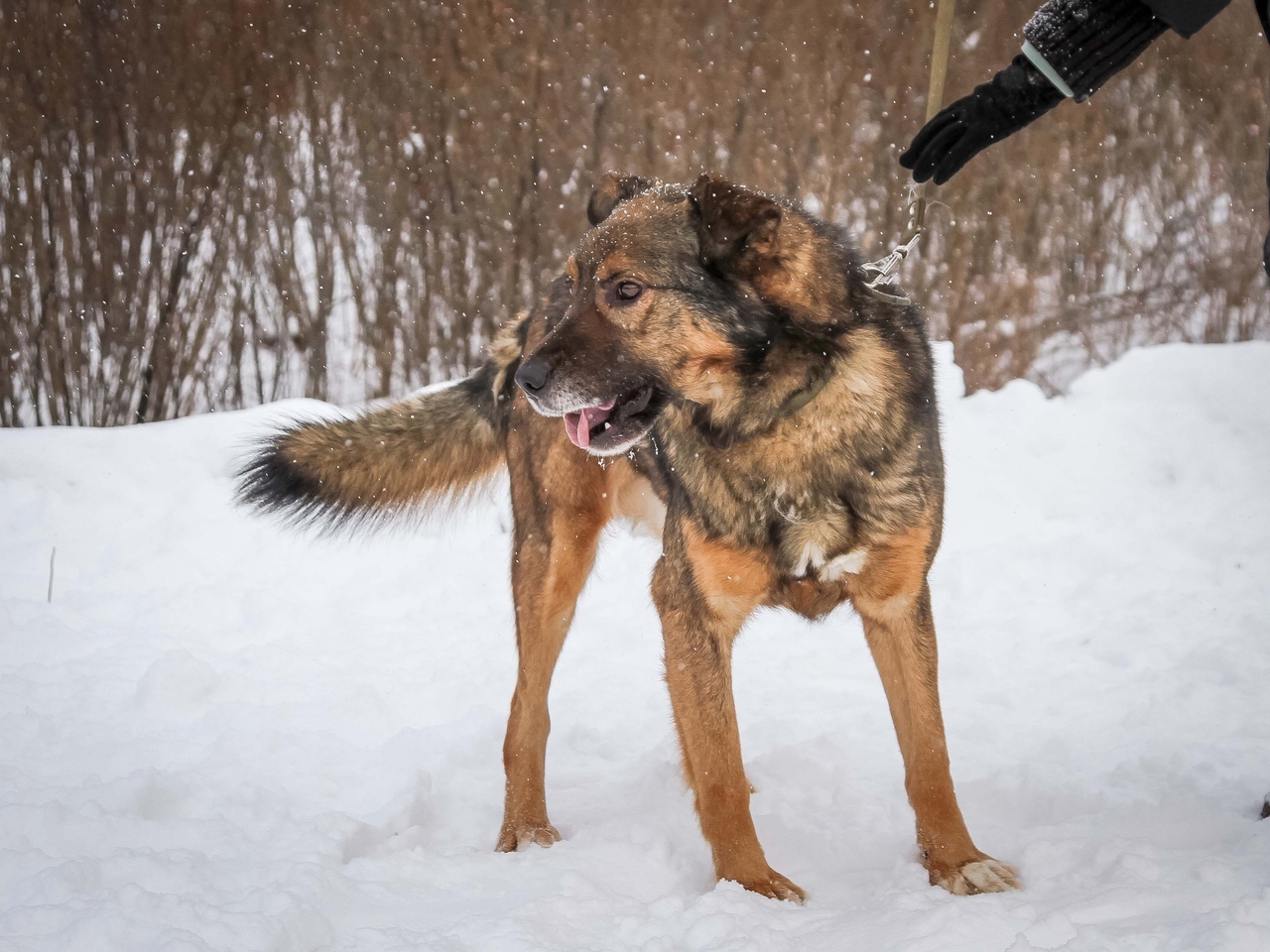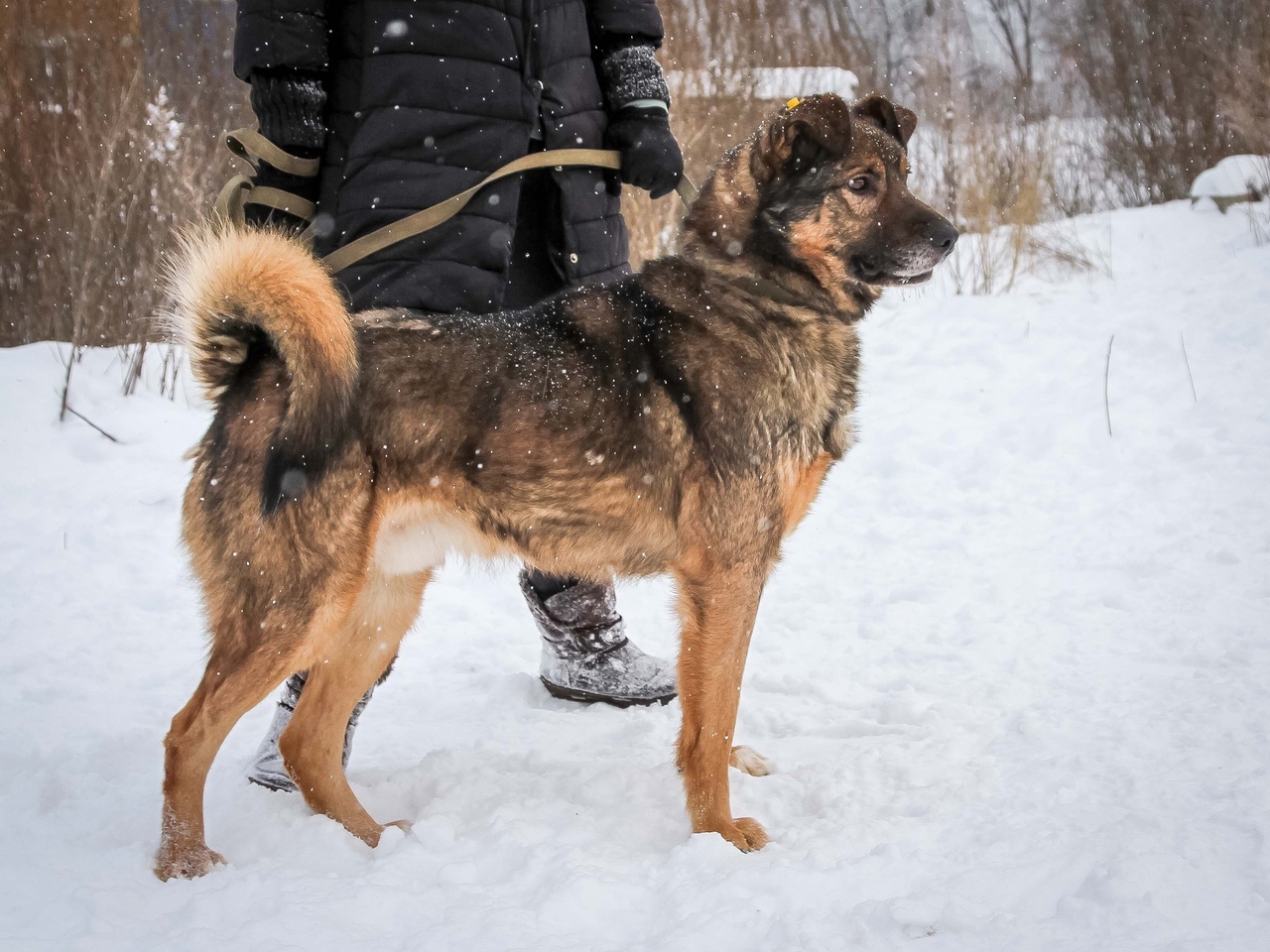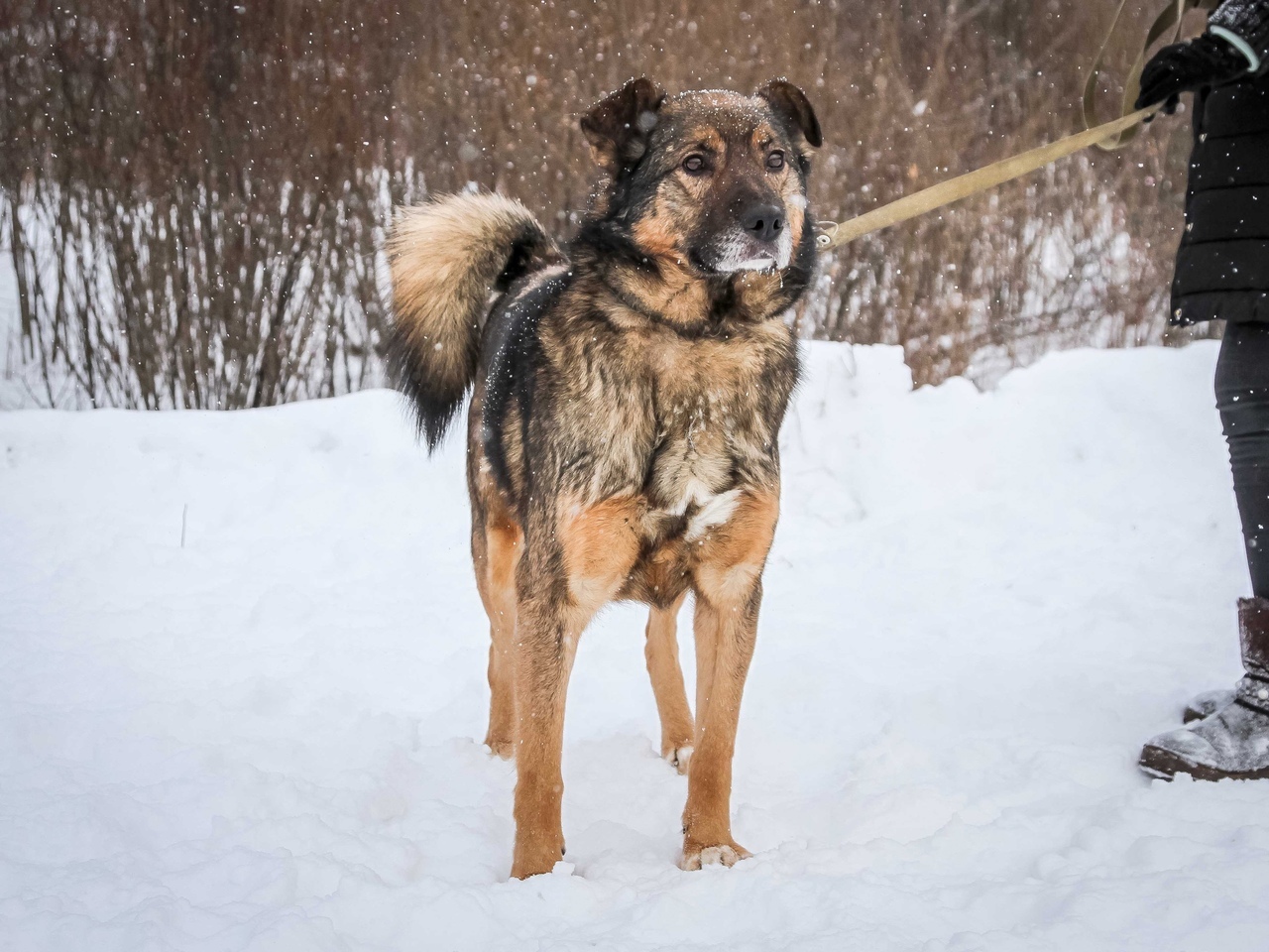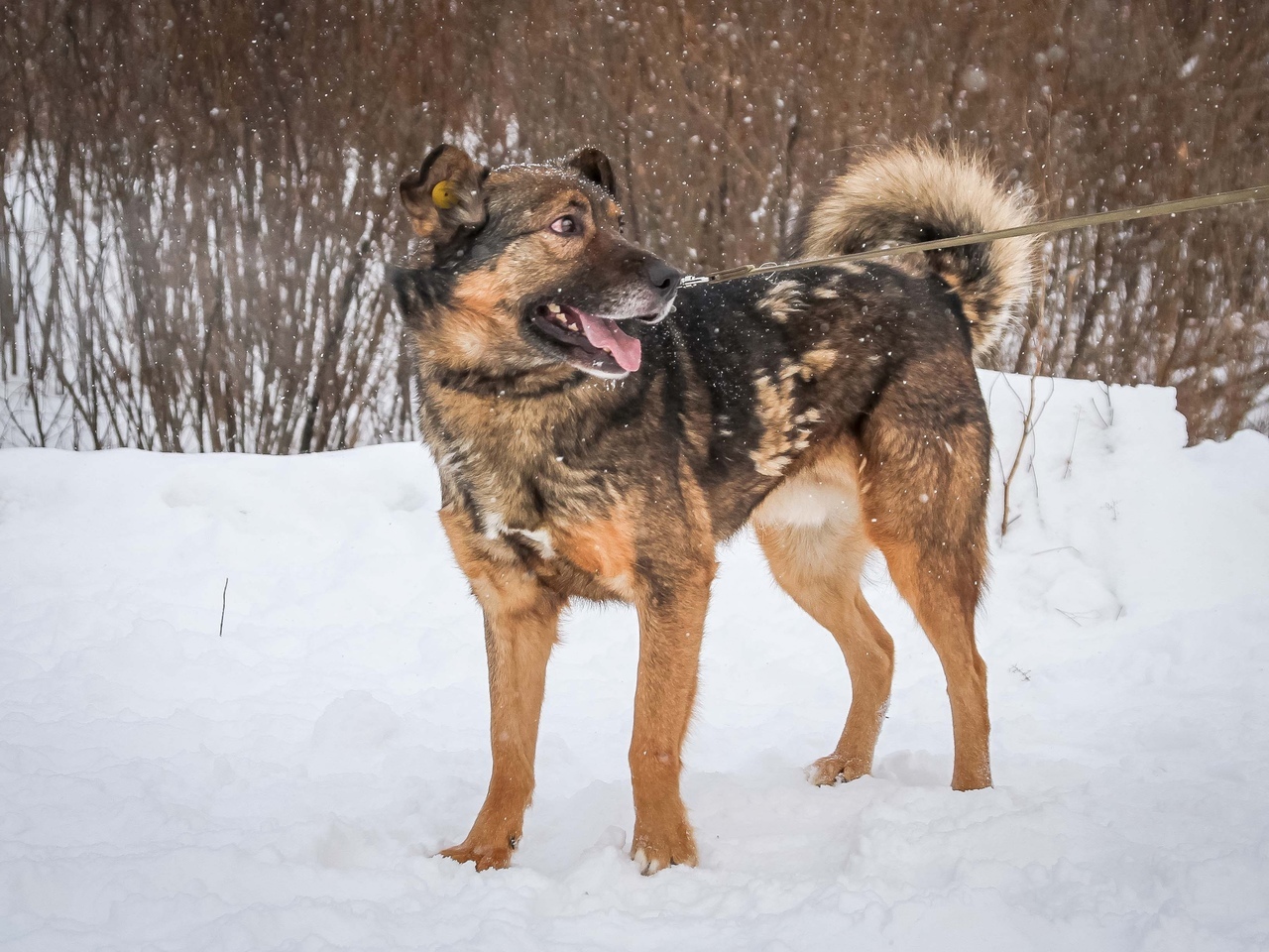 Алешка молодой пес, ростом выше колена, привит от бешенства, кастрирован, обработан от паразитов. В приют попал с отлова весной 2020 г. Отловлен на ул.Воронежская.