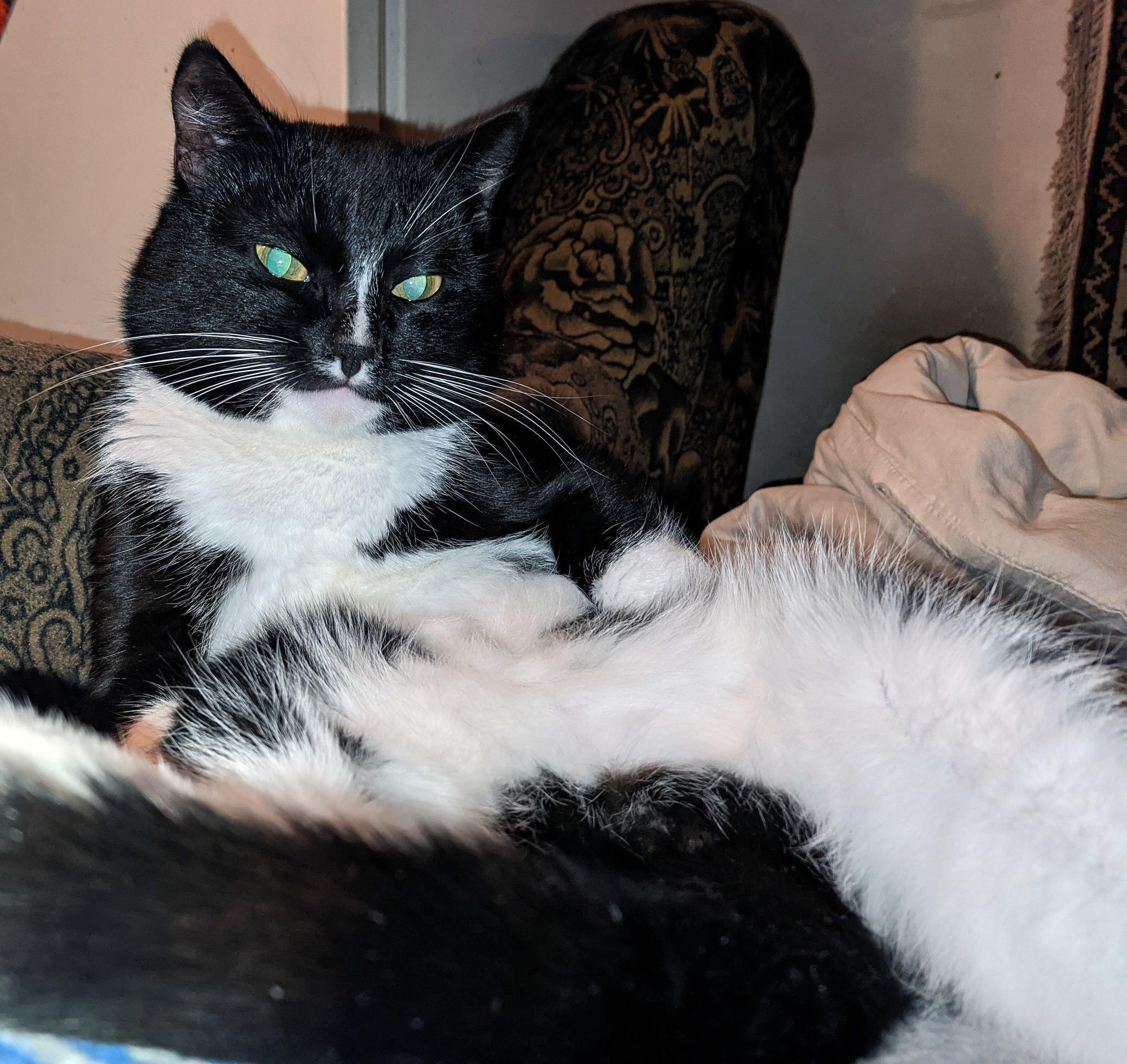 Этот красавец вырос на одном из красноярских заводов, где сейчас и живёт. Он ручной и ходит по цехам, где его привечают и кормят. Но как и у любого другого ничейного животного судьба его не предсказуема. А мог бы сделать карьеру, как другие коты с таким редким окрасом мордочки...