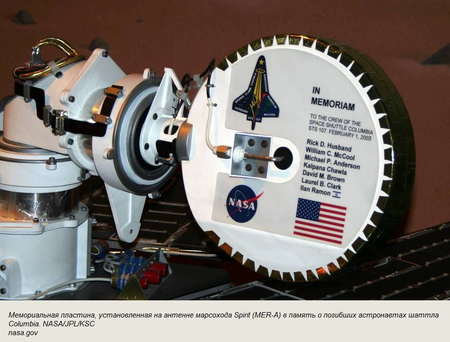 В тот же день место посадки MER-A получило название — Мемориальная станция «Колумбии» (Columbia Memorial Station) в память о погибшем 1 февраля 2003 года экипаже космического шаттла.