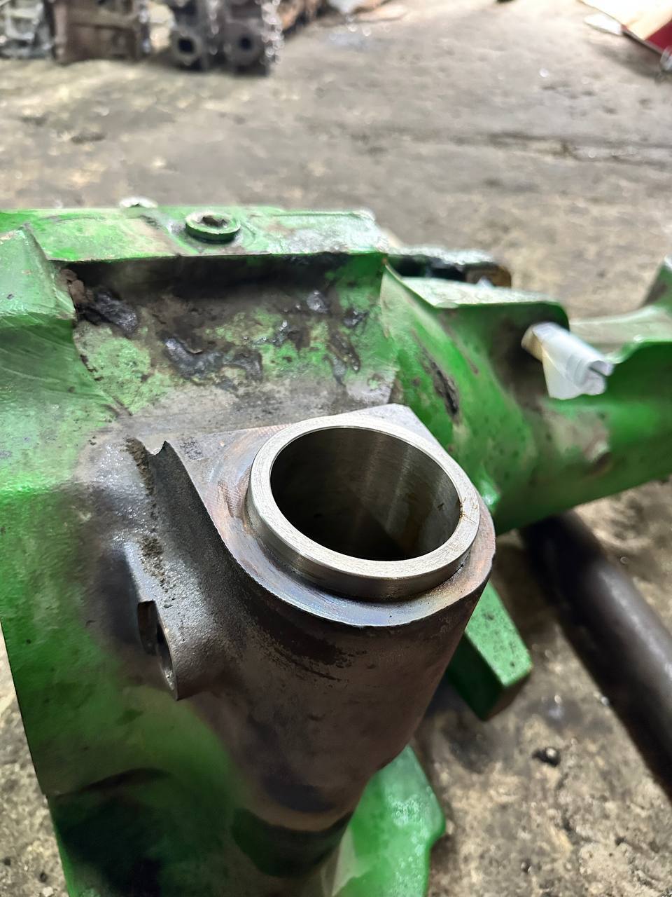 Втулка на своем места. Остывает. Как остынет, буду выставлять на станок и растачивать под палец.
