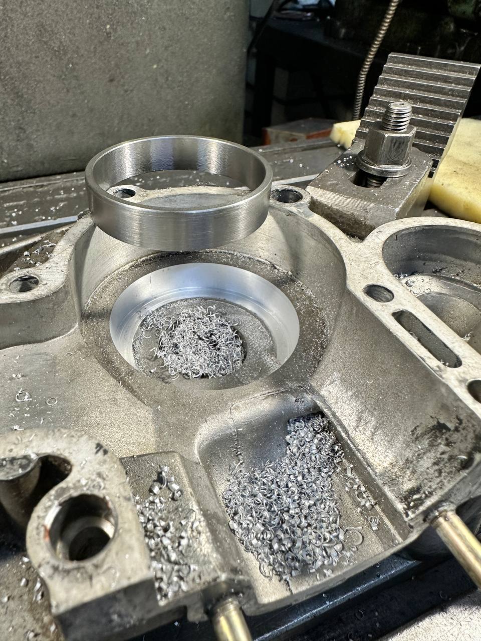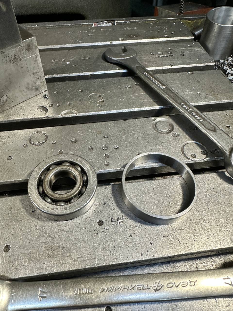 Расточили посадку для втулки, натяг на втулку 0,10.