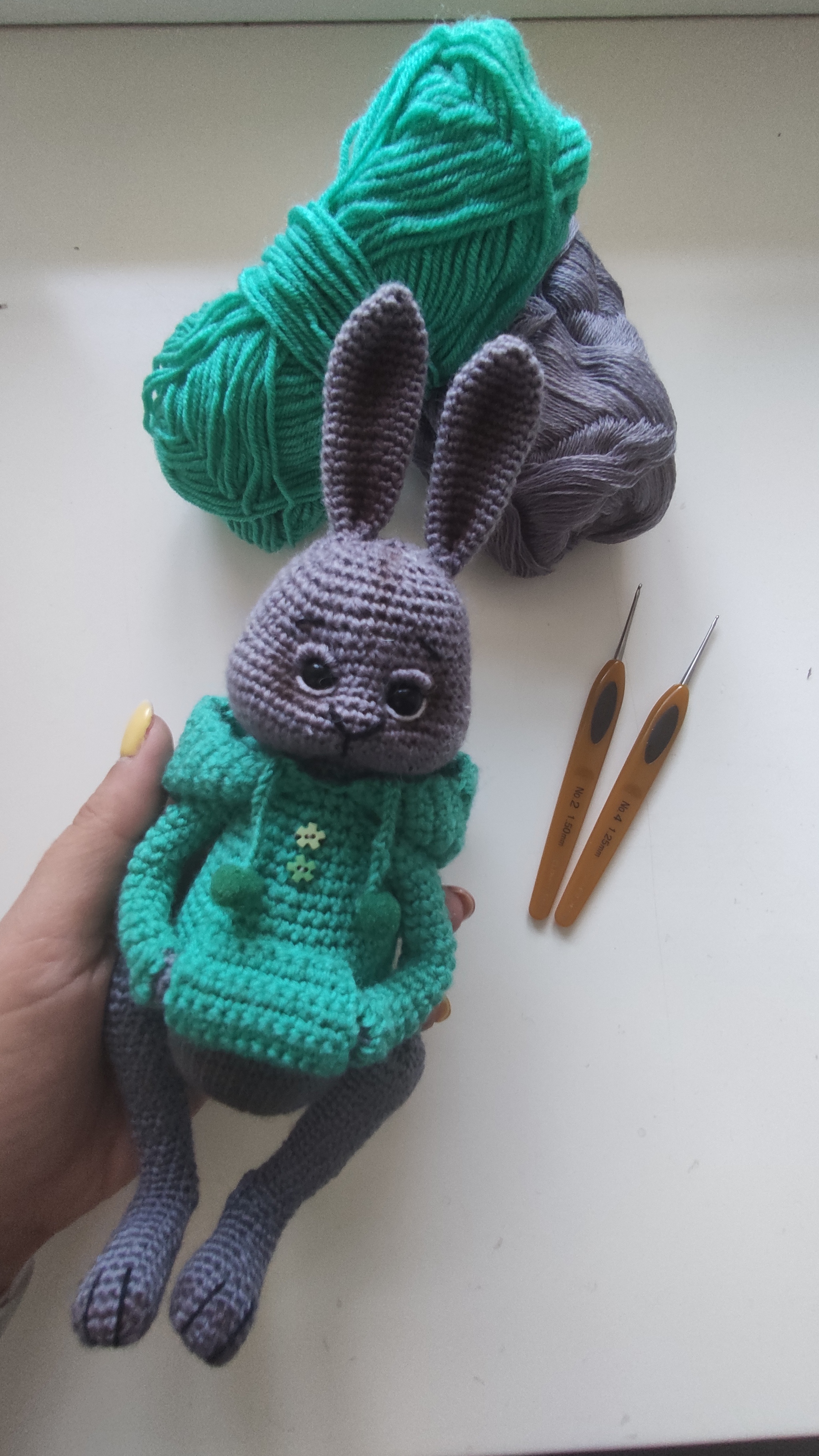 Связала зайца в ярком худи.