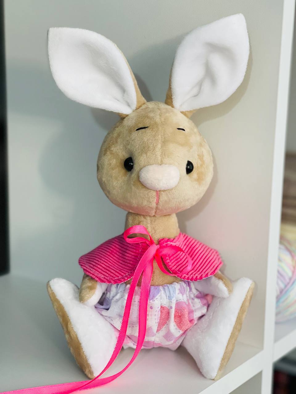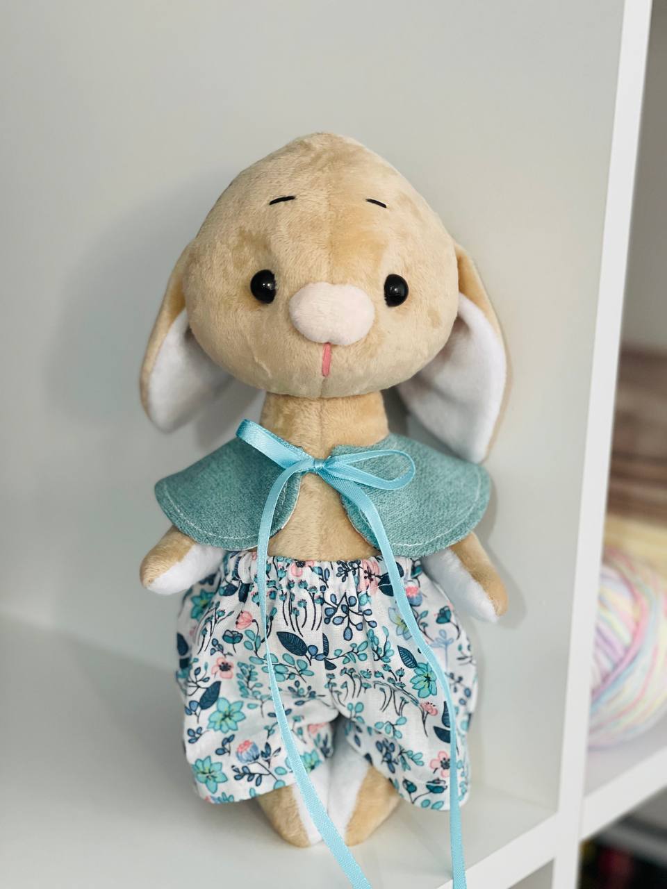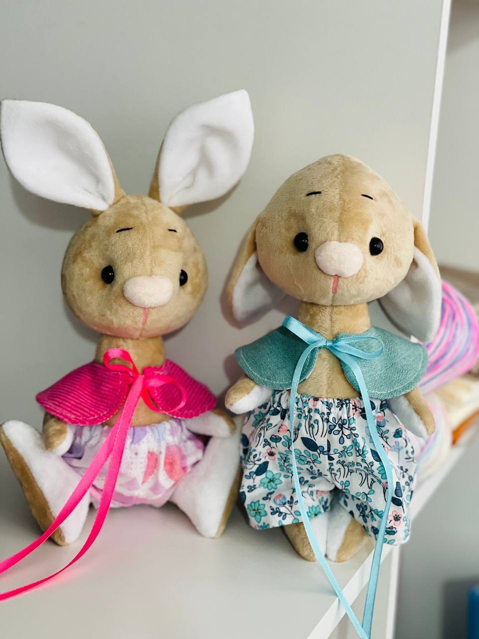 Шью я обычно сами игрушки по стандартным выкройками из мастер-классов, (иногда что-то меняя, в зависимости от ткани или какой-то задумки) и они как бы должны получаться одинаковыми. Но нет, немного по-разному сделаешь брови, уложишь гриву или ушки иначе, оденешь в другую одежду - и вот уже у игрушек разный характер. Я покажу, как это работает еще не раз, надеюсь, но сегодня мне помогут мои милые зайчата. Начнем с девочки.