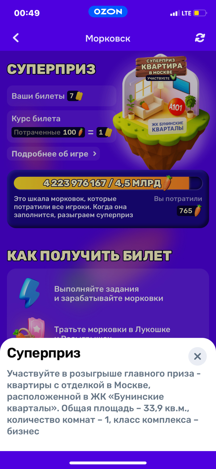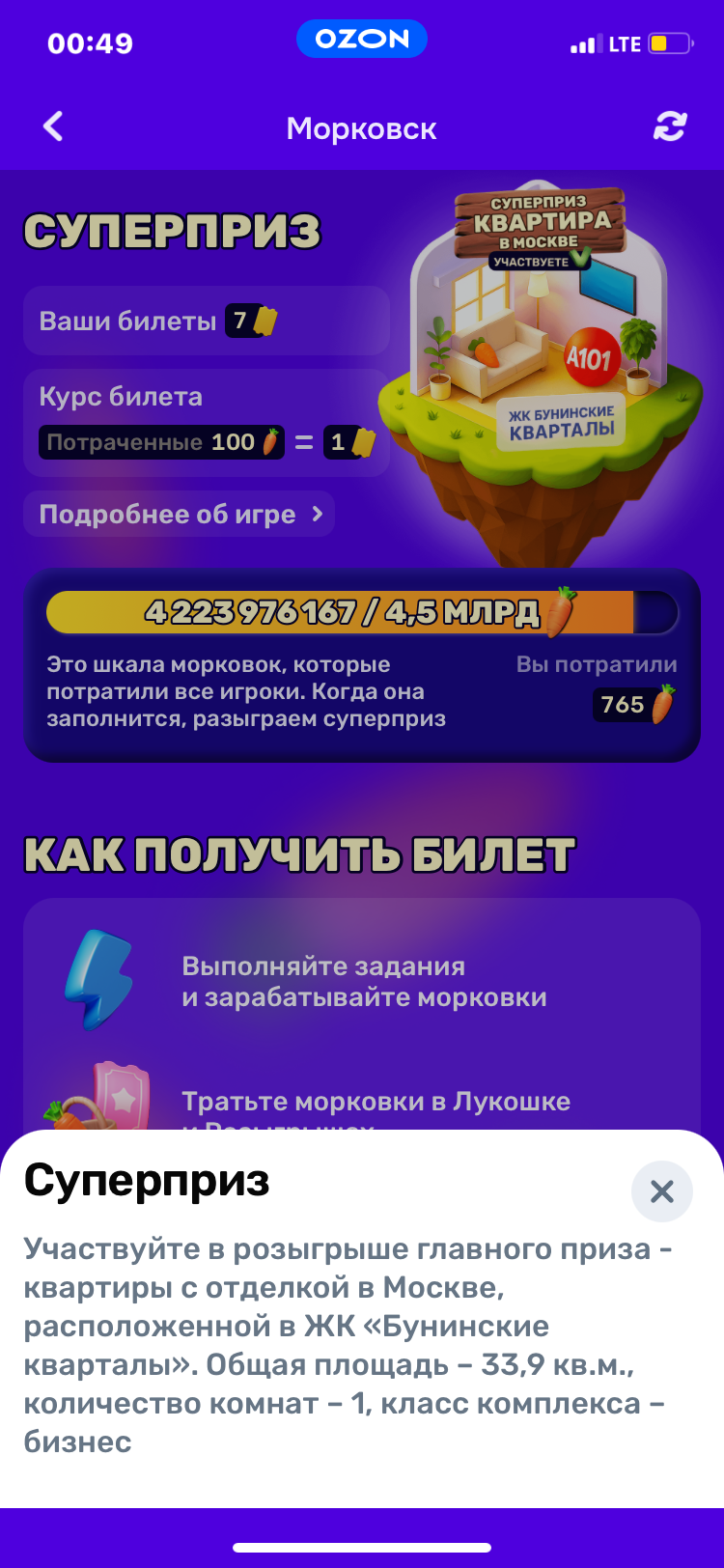 Вкратце, участники должны потратить 4,5 миллиарда «морковок» для розыгрыша главного приза - квартиры в ЖК «Бунинские кварталы» в Москве.