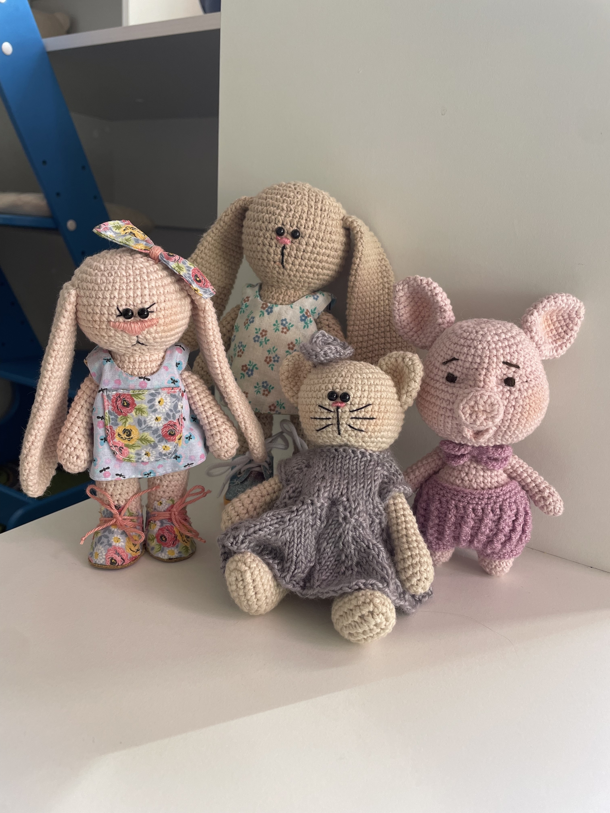 У меня любовь появилась после дешманского (на тот момент) набора для вязания игрушки. Я так думаю, набор для детей, но моя сестра не заинтересовалась, а я пока пыталась вникнуть чтобы ей объяснить, увлеклась настолько, что начала иискать новые схемы и вязать) в том наборе инструкция очень подробная была. Я думаю такие есть в интернете, просто именно у меня получилось вот так, именно с детского наборчика)