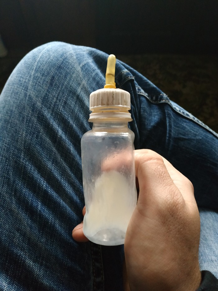 Заяц был оставлен. По заказу бабушки был изготовлен девайс для вскармливания