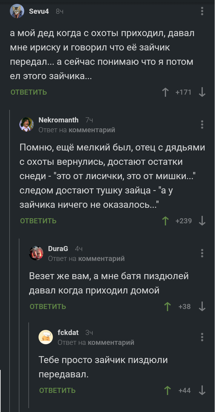3206 gropers Зайцы из детства 7 лет назад #comment_118585959 Комментарии на Пикабу Заяц Детство Родители Скриншот