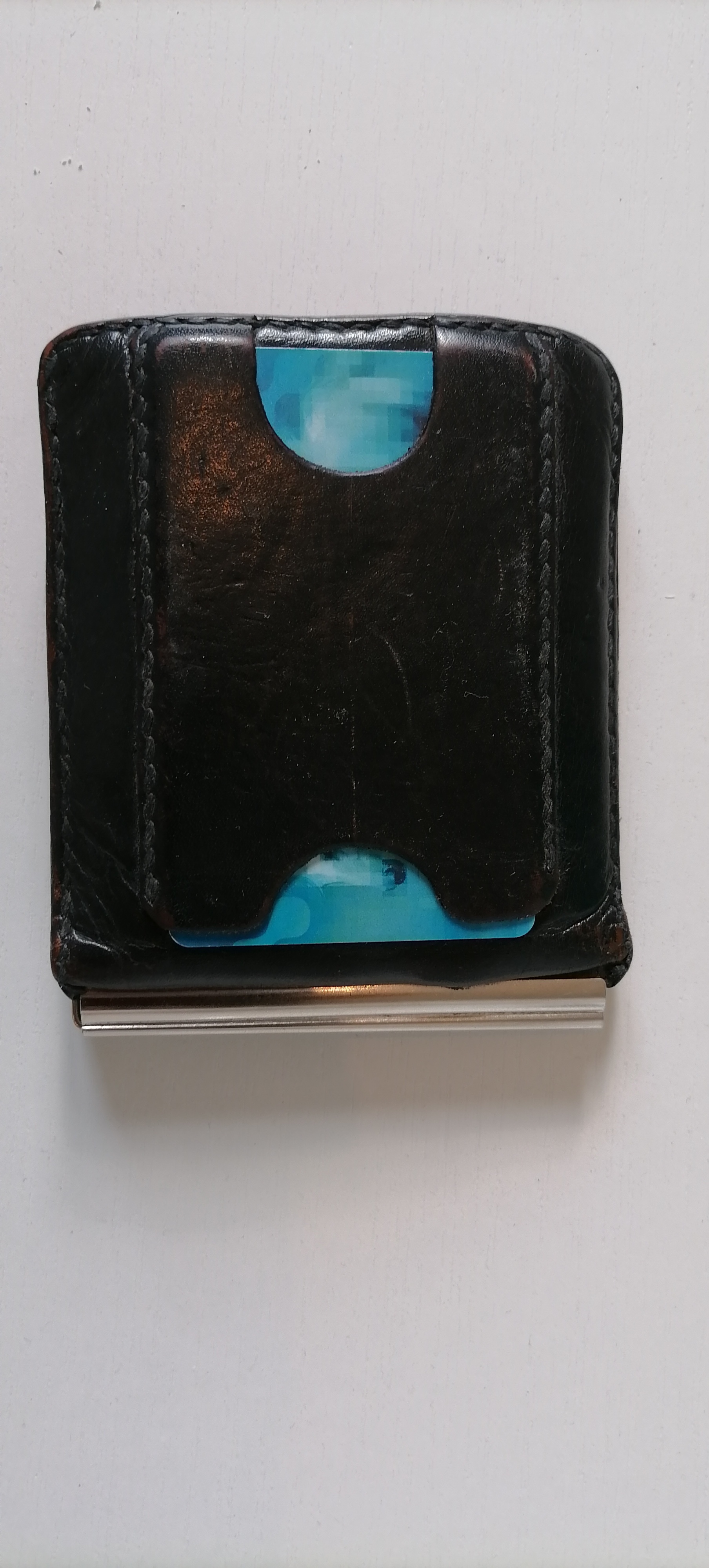 По три вкладки на каждой стороне, два скрытых и внешний для проездного. Зажим предпочёл бы без внешнего металла, карман рвёт. Кто бы взялся, и во что обойдется?