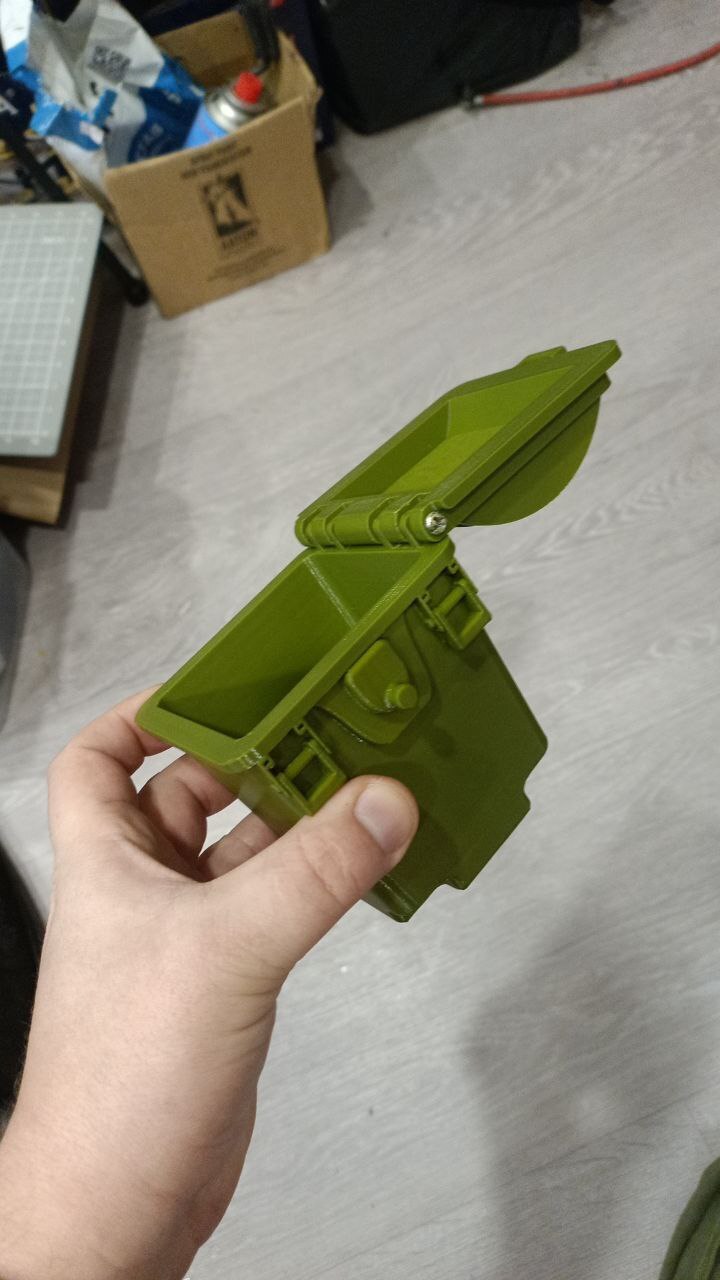 После печати крышки оказалось, что она "хлябает", и что крепления на самом баке слабоваты. Если открыть крышку с силой, то могут сломаться. А с ногами вообще не угадал - слишком длинный и узкий штырь. Пришлось переделывать.