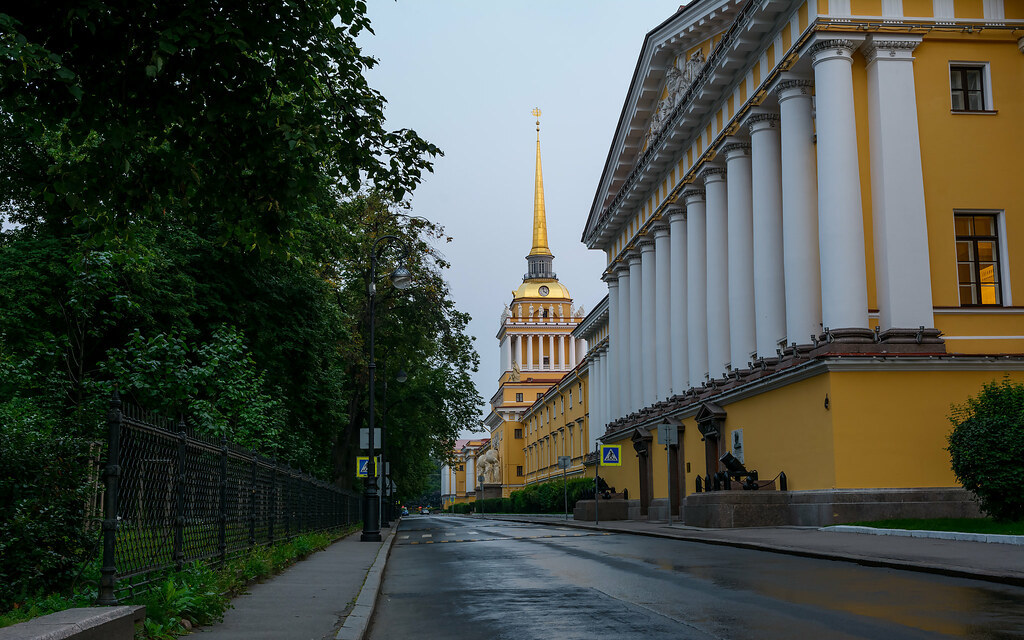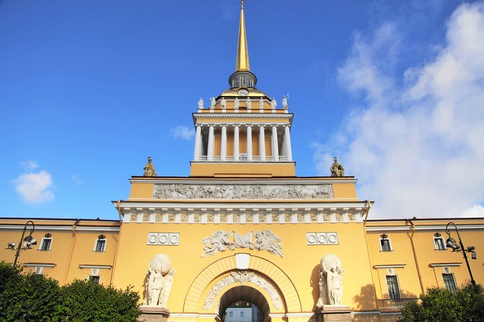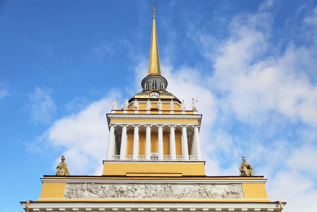 Главное Адмиралтейство в городе на Неве является великим архитектурным наследием, памятным зданием, выполненным в стиле русского ампира и украшенным шпилем, остриё которого увенчано позолоченным кораблем, весом в 65 килограммов, на его позолоту ушло 2 килограмма чистого золота.