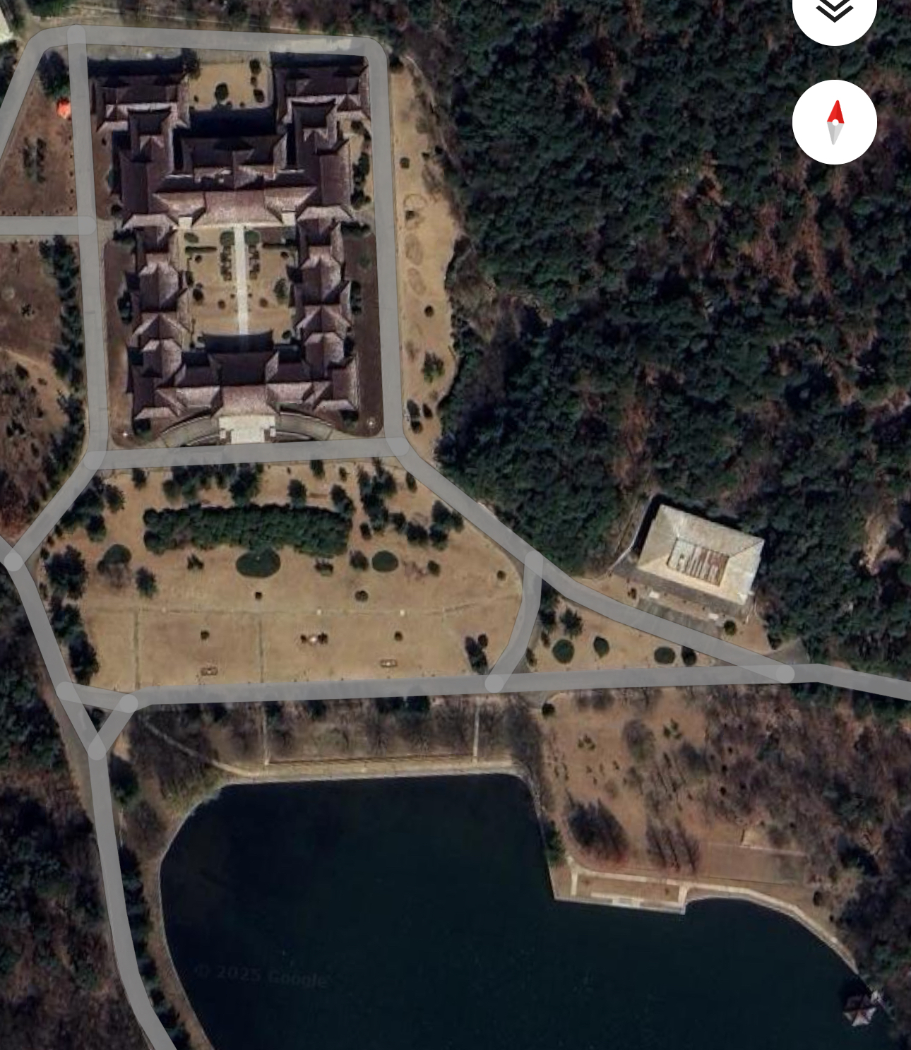 Тут я впервые засомневался: а вдруг это музей/учебное заведение, но тогда на площади должны четко были видны портреты вождей, а их тут вроде нет. Да и локация отдаленная среди леса.