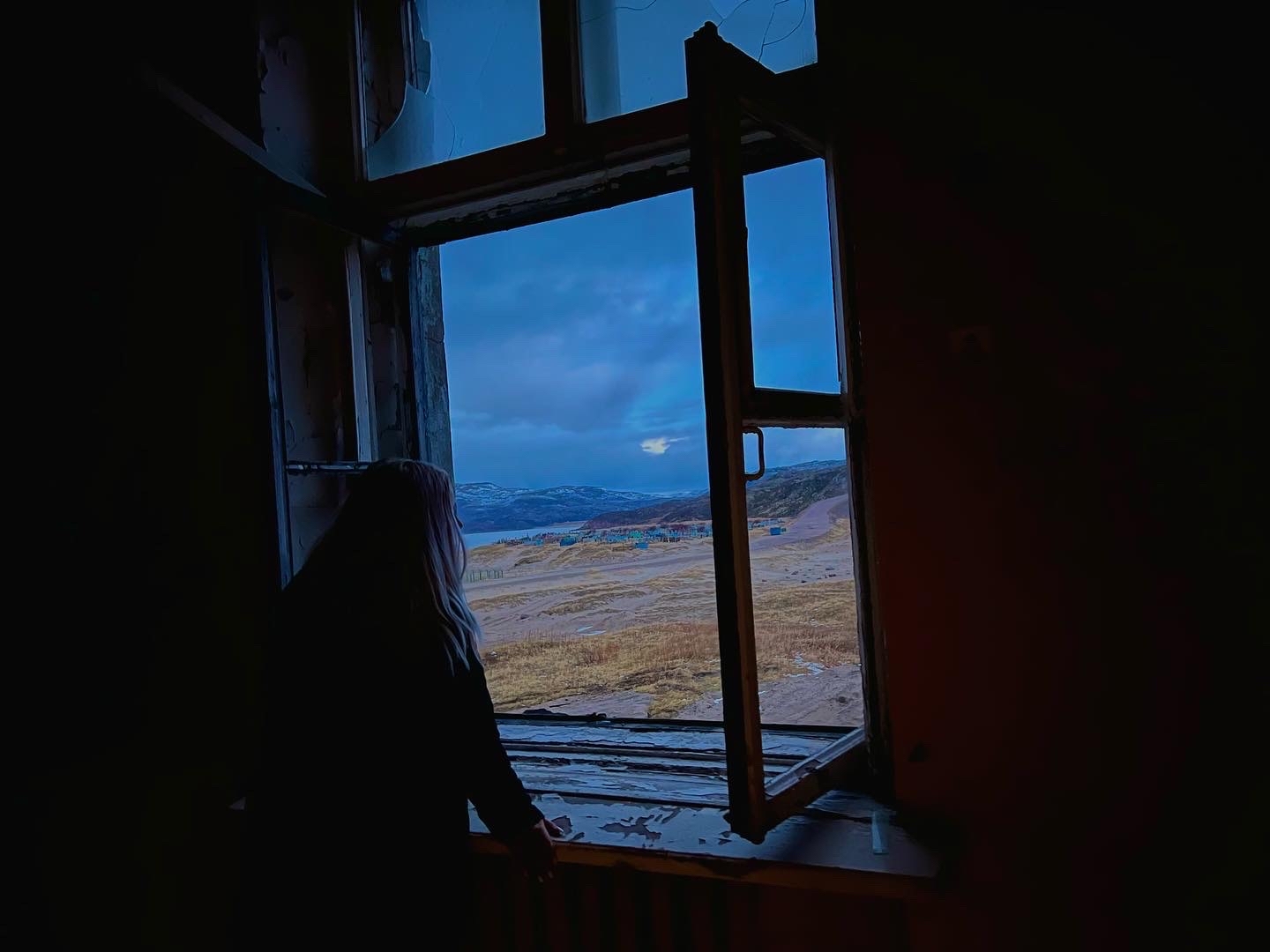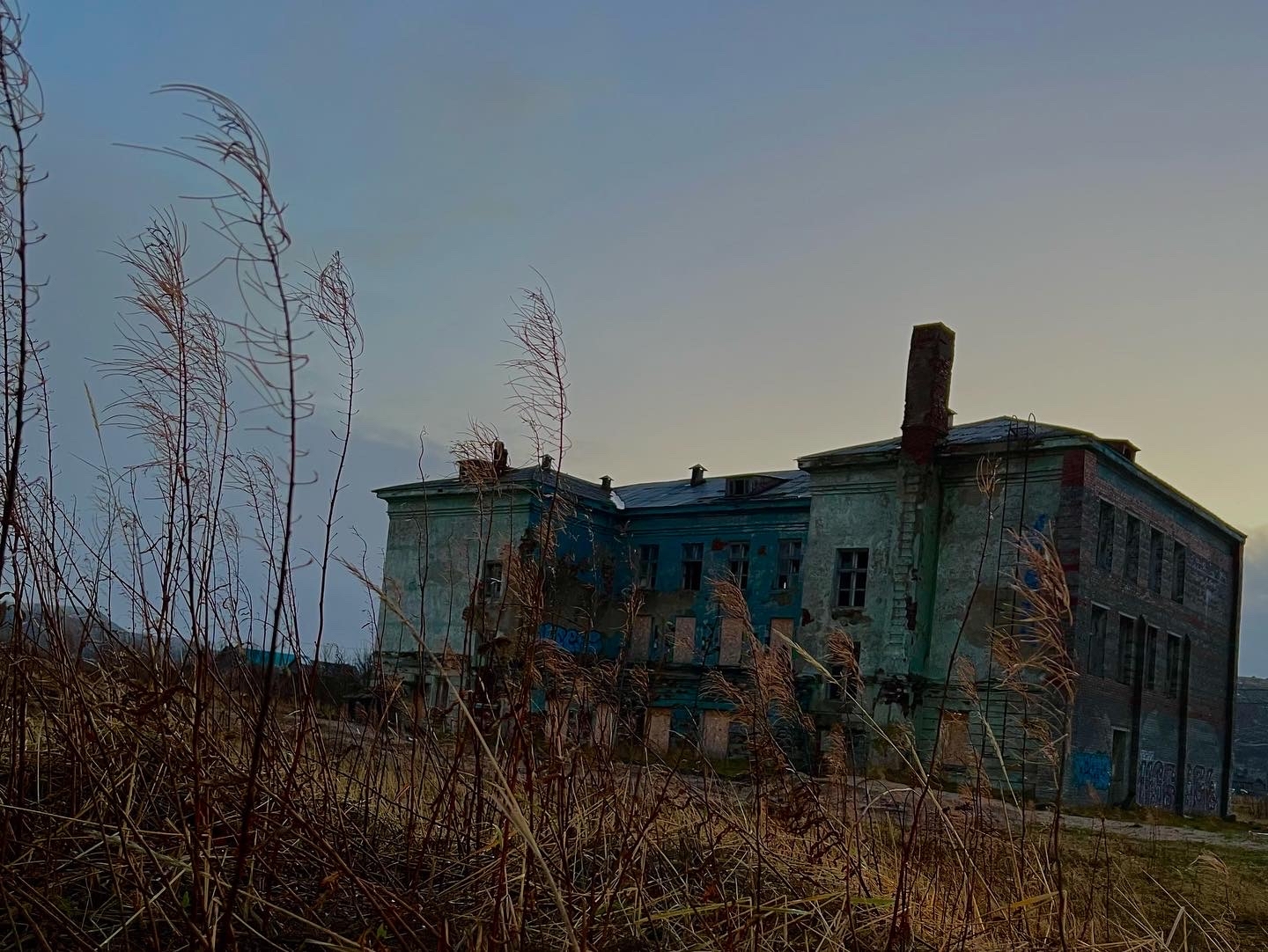 Хочу показать ее и с другой стороны: заброшенная школа, которая сейчас выглядит как арт-объект, а из ее окон видно волны и бескрайнюю меланхолию.