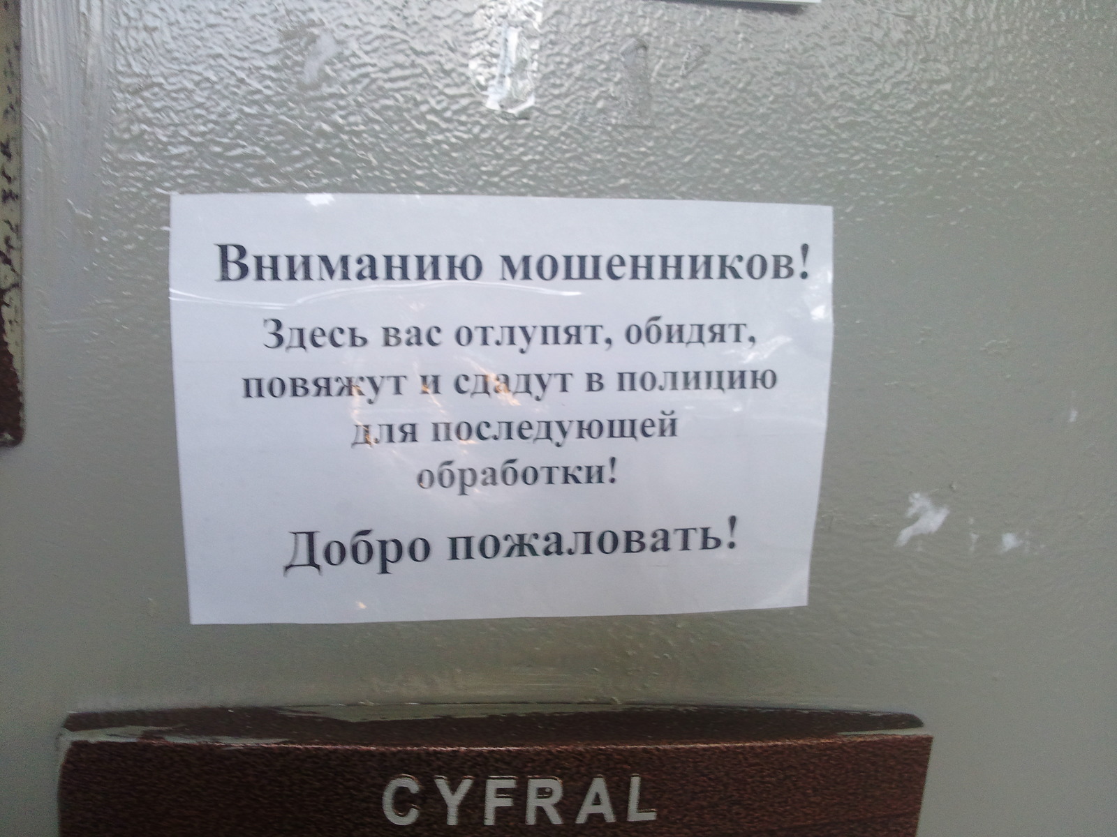 В результате один из собственников квартир решил атаковать врага психологически, что собственно и изображено на фото. Чем закончилось сказать, к сожалению, не могу, так как с мамой не живу и появляюсь у нее периодически на выходных, ну а летом то еще реже, за что стыдно(