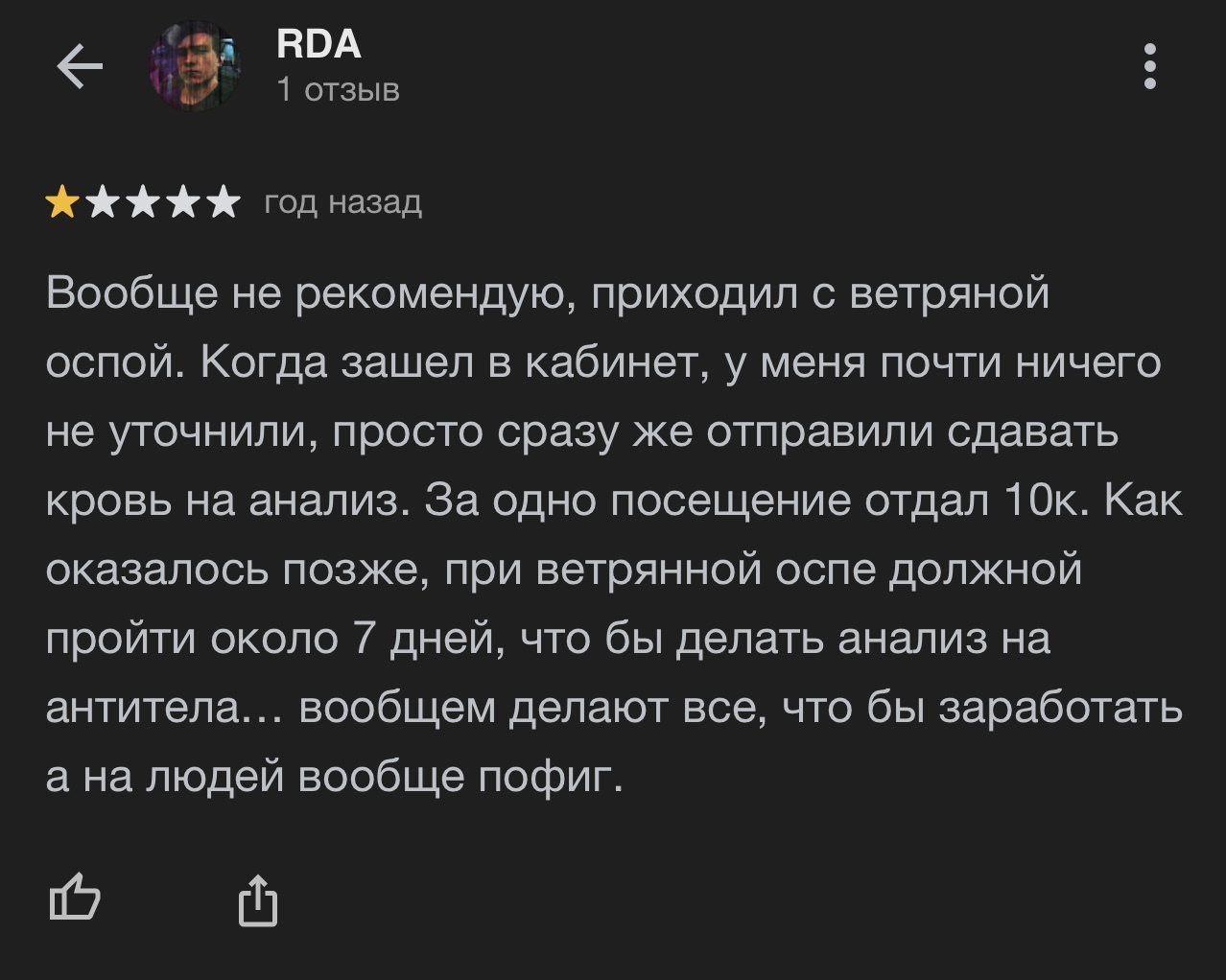 П.С. Скриншот отзыва взят у одной из частных клиник города Москвы.